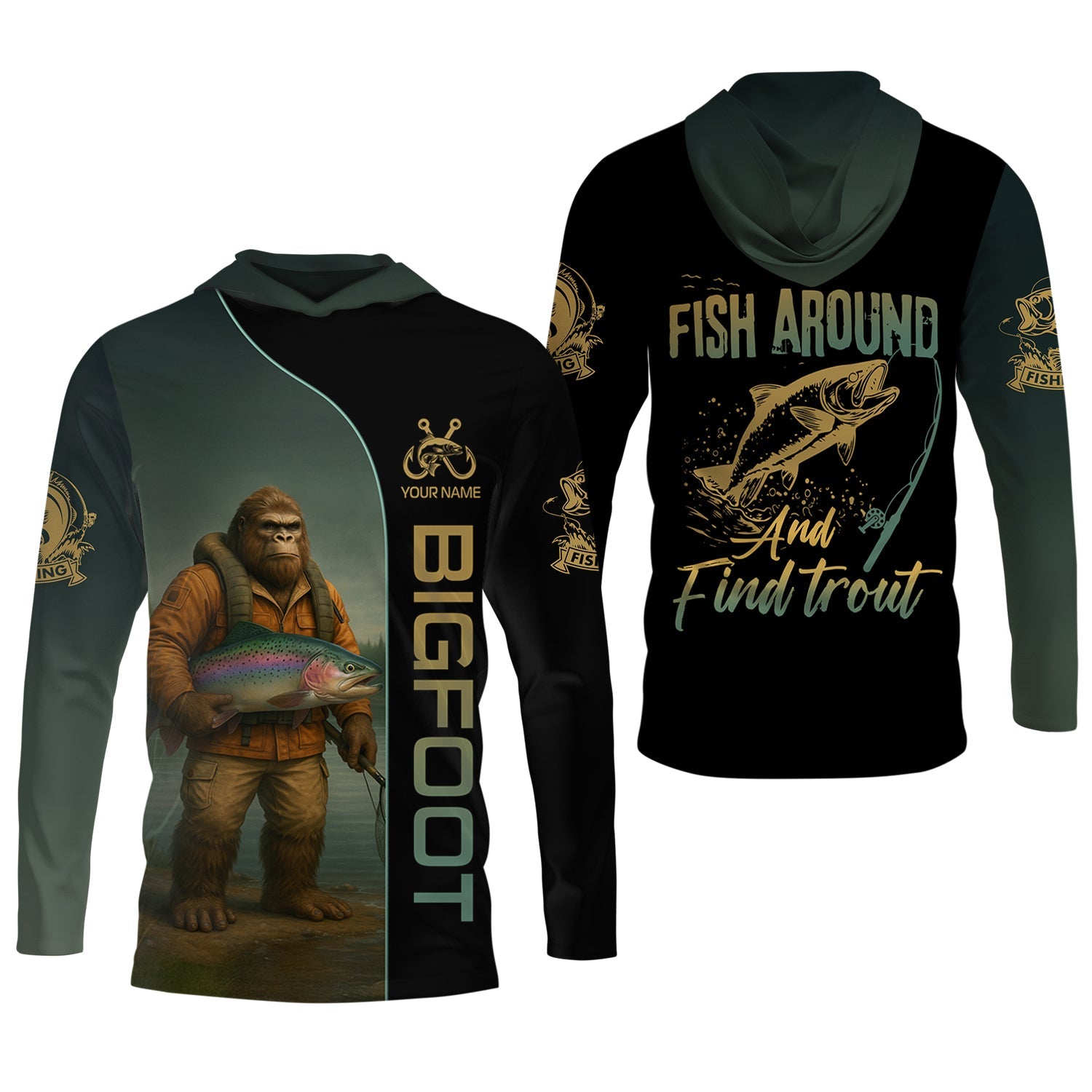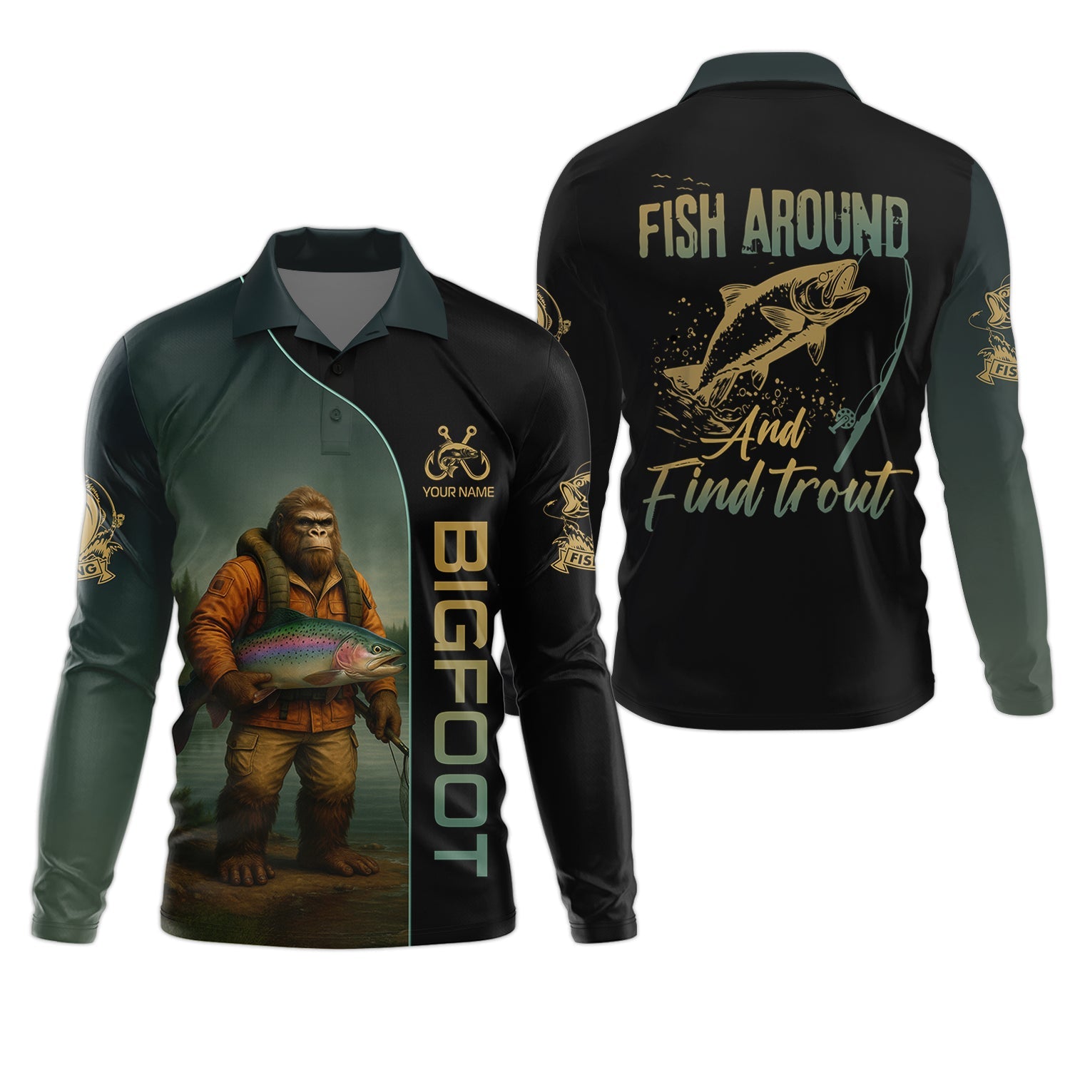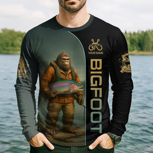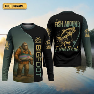 Fish Around & Find Trout Fishing Shirt, Bigfoot Fishing Shirt, SPF Shirts For Men, Funny Fishing Shirt
