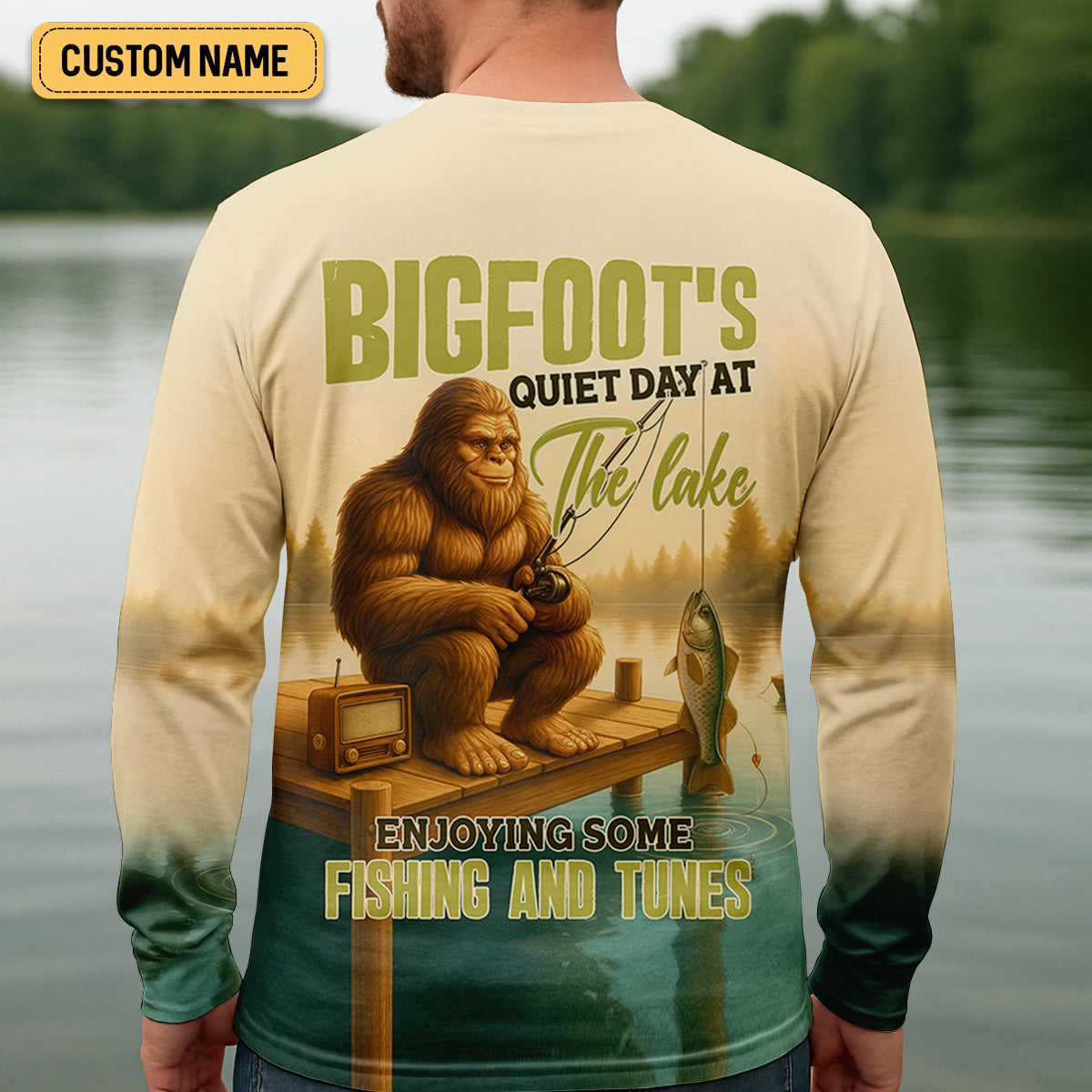 Bigfoot's Quiet Day At The Lake Fishing UPF Shirts, Funny Fishing Shirt, Presents For Fishermen