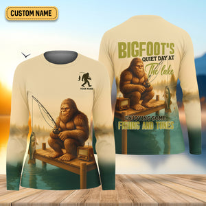 Bigfoot's Quiet Day At The Lake Fishing UPF Shirts, Funny Fishing Shirt, Women Fishing Shirt