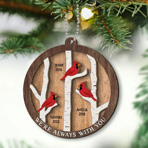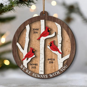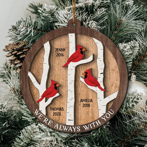 Birch Tree Cardinals Memorial Wood Christmas Ornament, Sympathy Gift