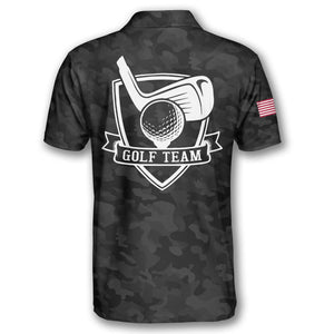Black Camouflage Custom Golf Polo Shirts for Men, Long Sleeve Golf Shirts, Golf Lovers Gift