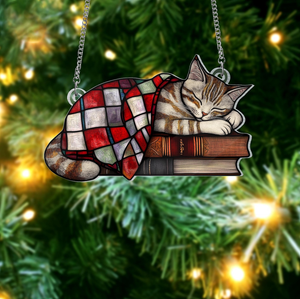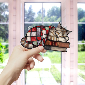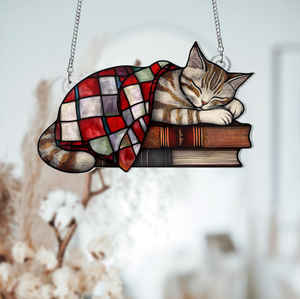 Black Cat And Book Suncatcher Ornament, Books Ornament, Cat Lover Gift, Cat Decor