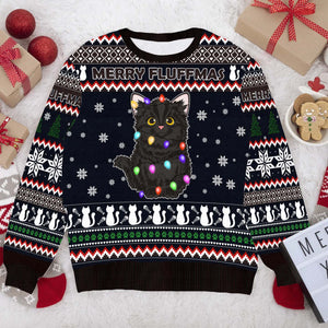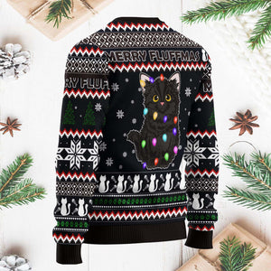 Black Cat Merry Fluffmas Funny Christmas Ugly Sweater, Christmas Gifts
