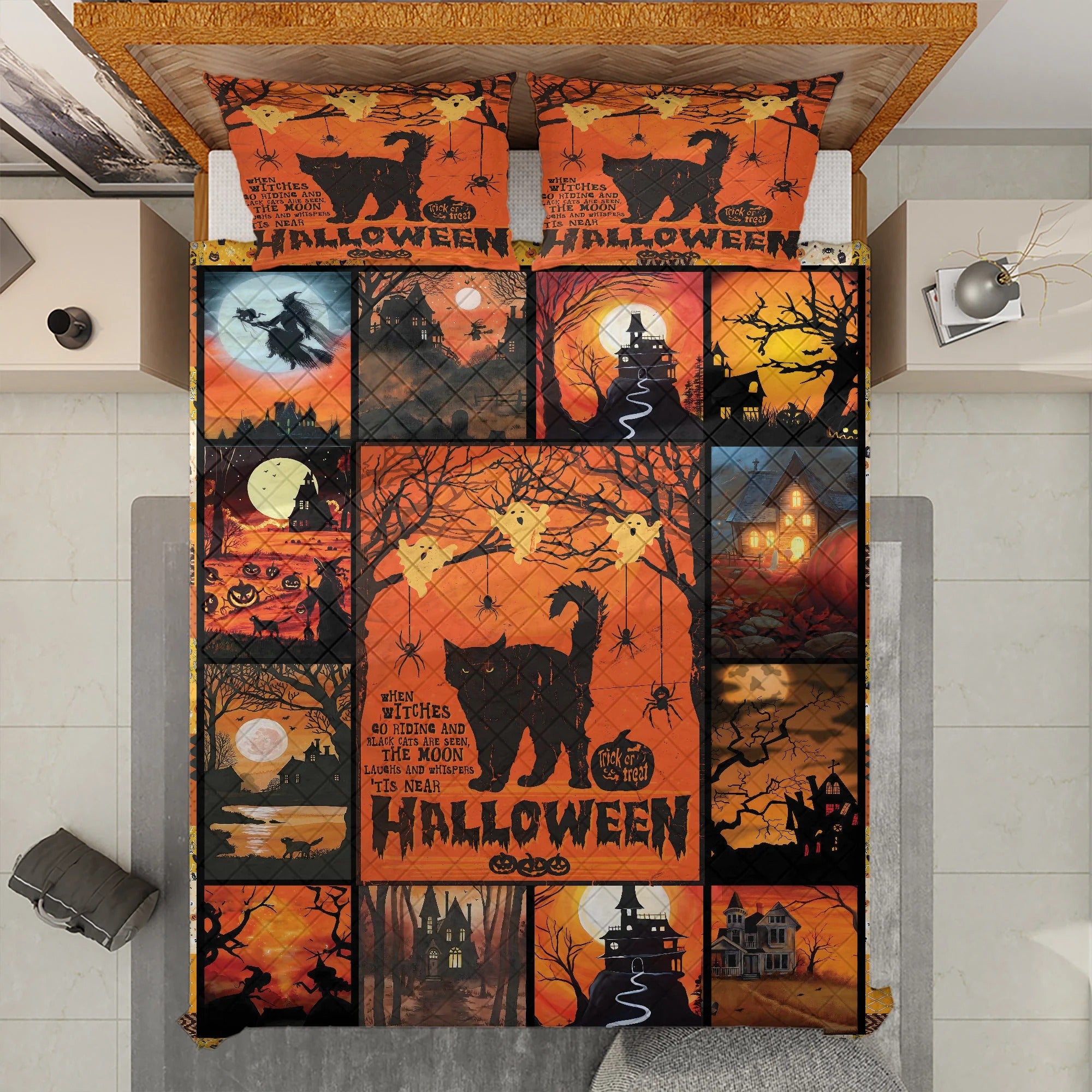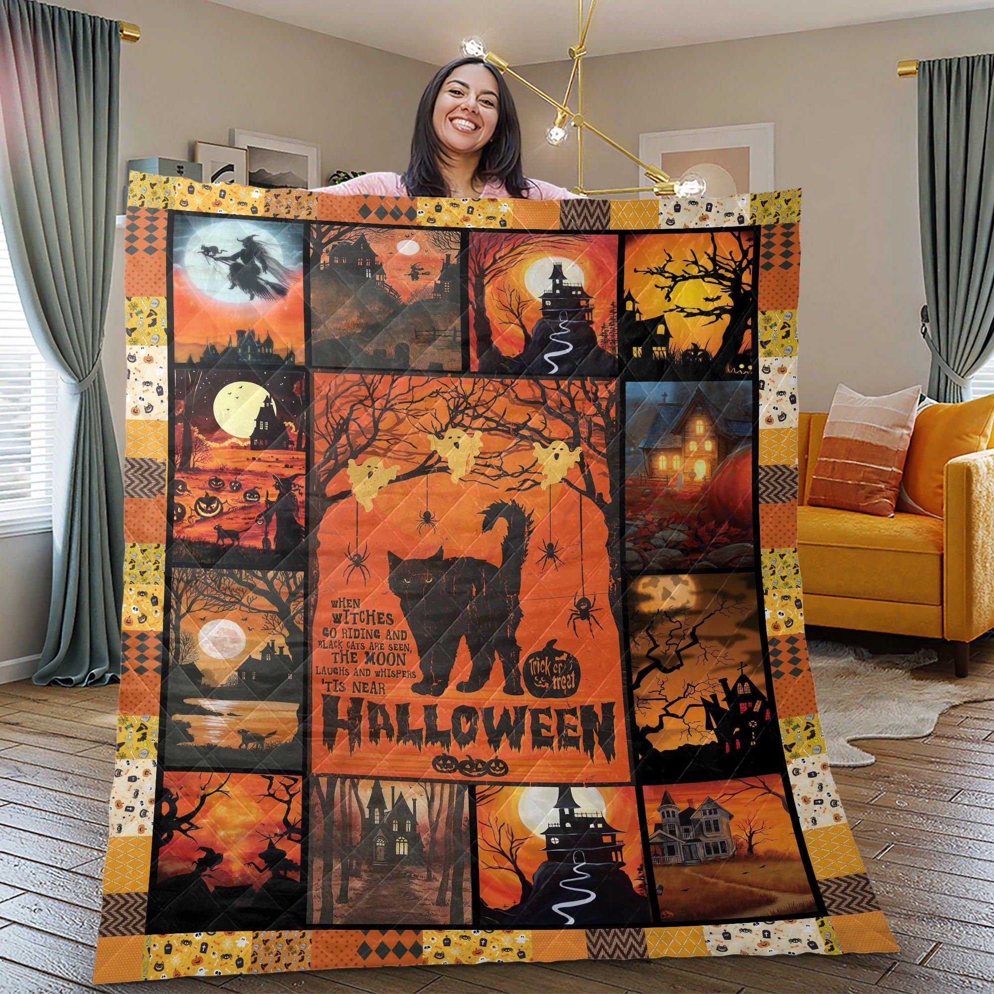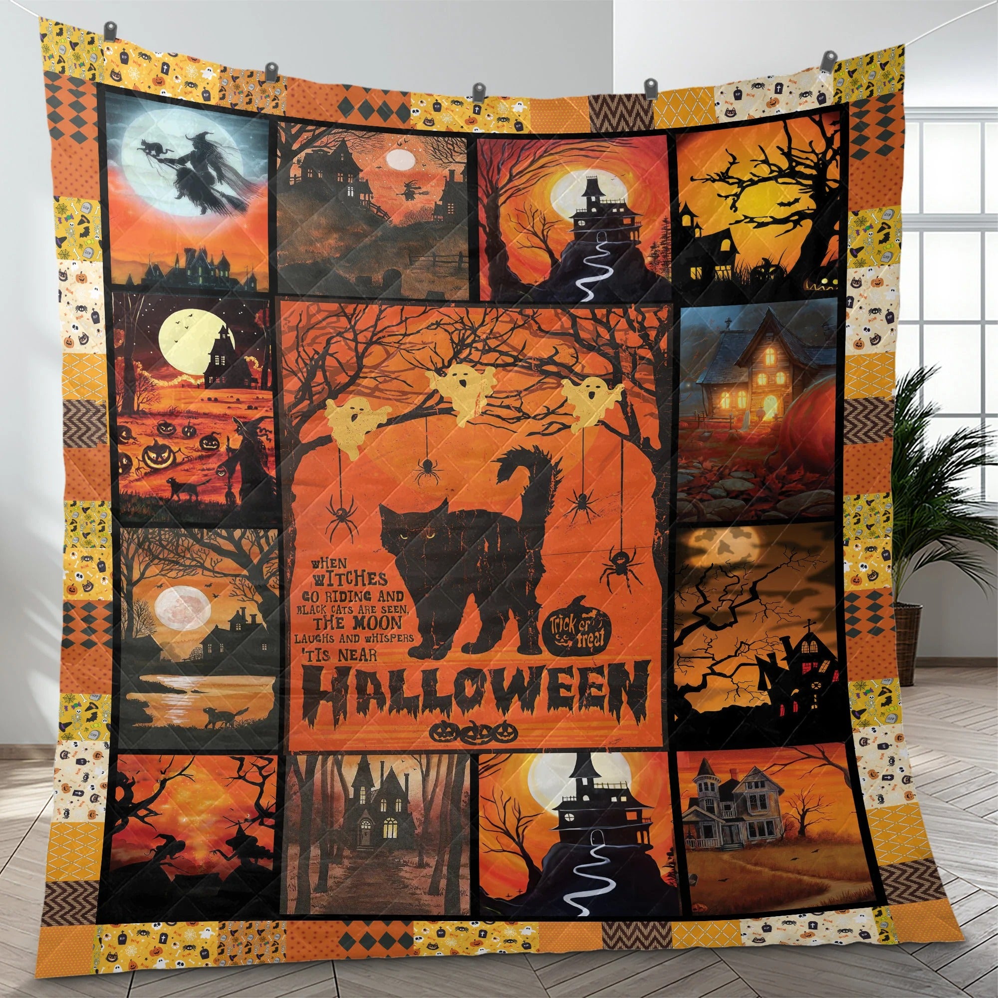 Black Cat Witch Halloween Blanket, Best Bed Blankets, Halloween Home Decor