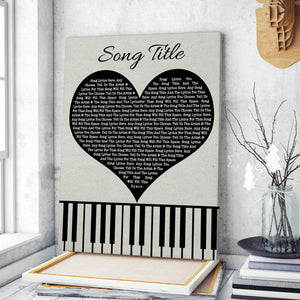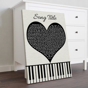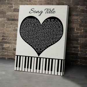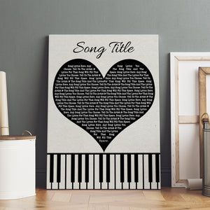 Black Heart & Piano Keys Custom Music Wall Art With Song Lyrics, Music Wall Decor, Wedding Gifts