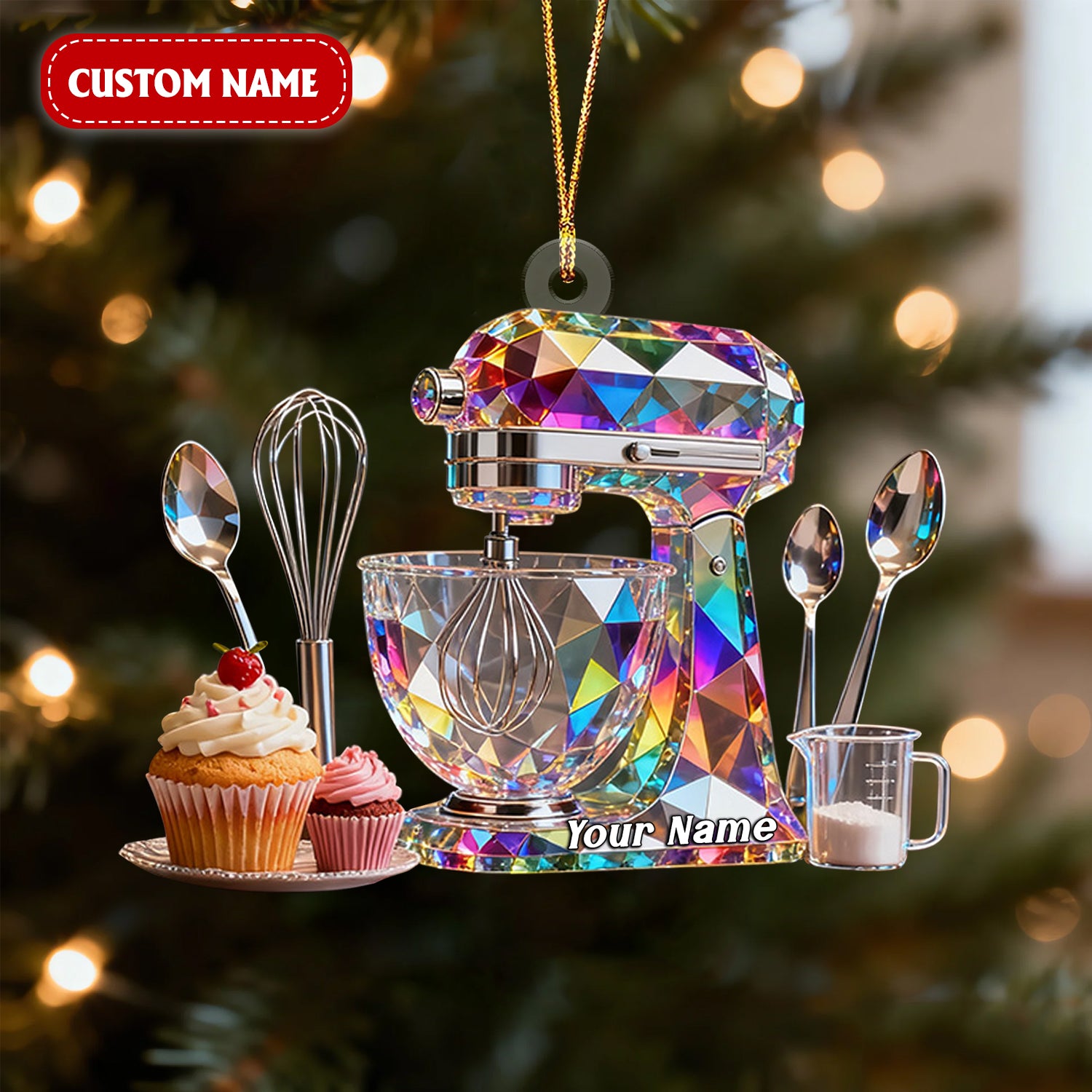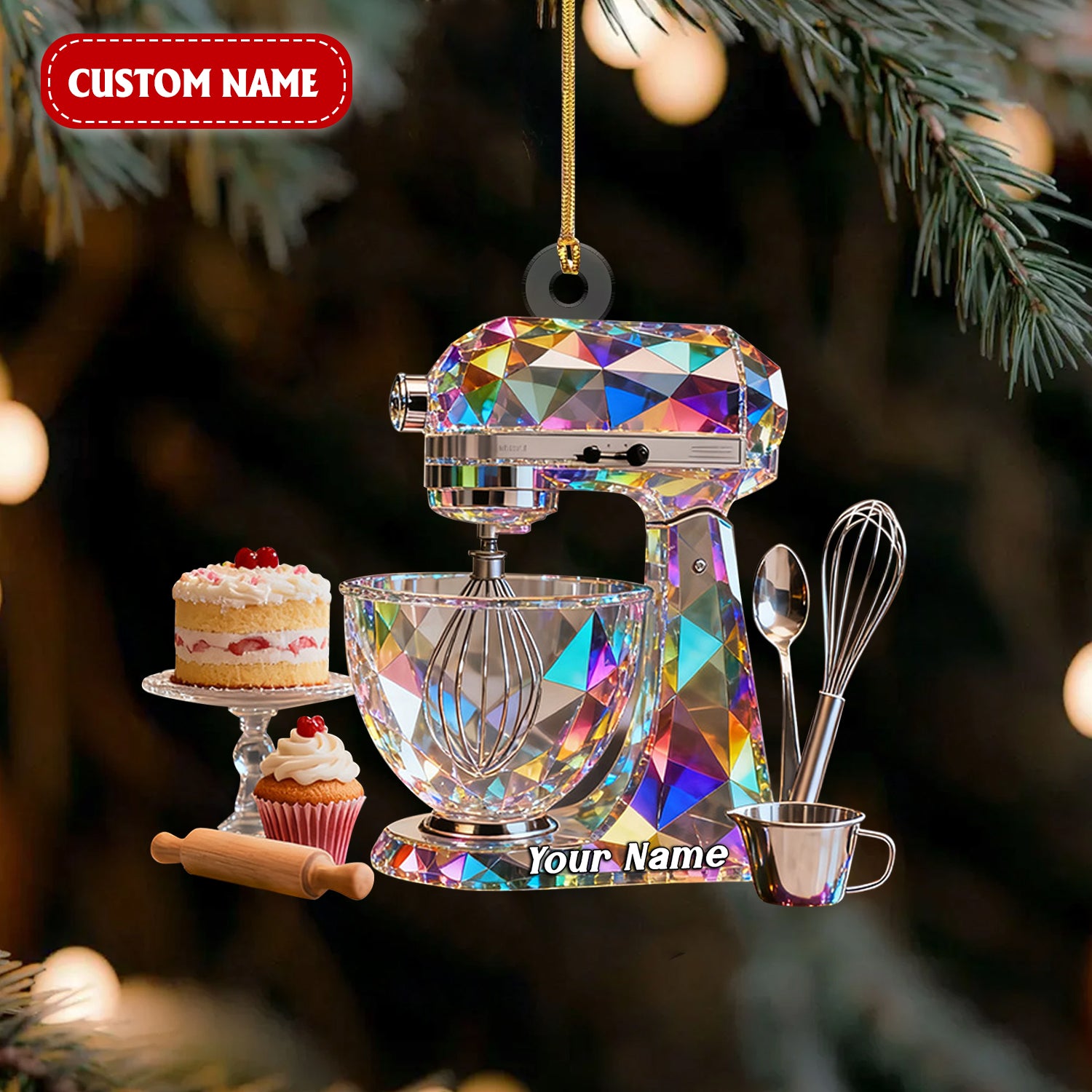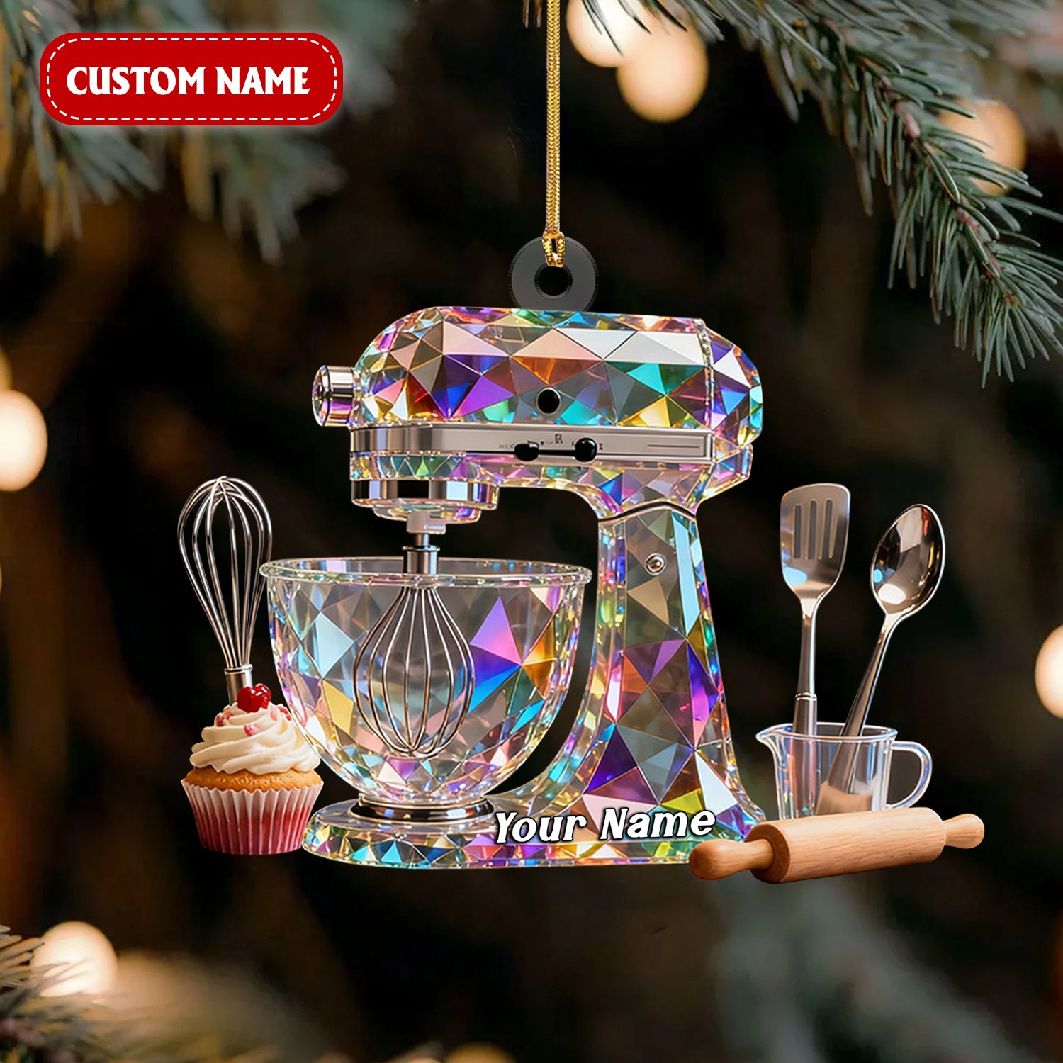 Blender Baking Custom Name Stained Glass Effect Acrylic Christmas Ornament, Xmas Decor, Baker Gift