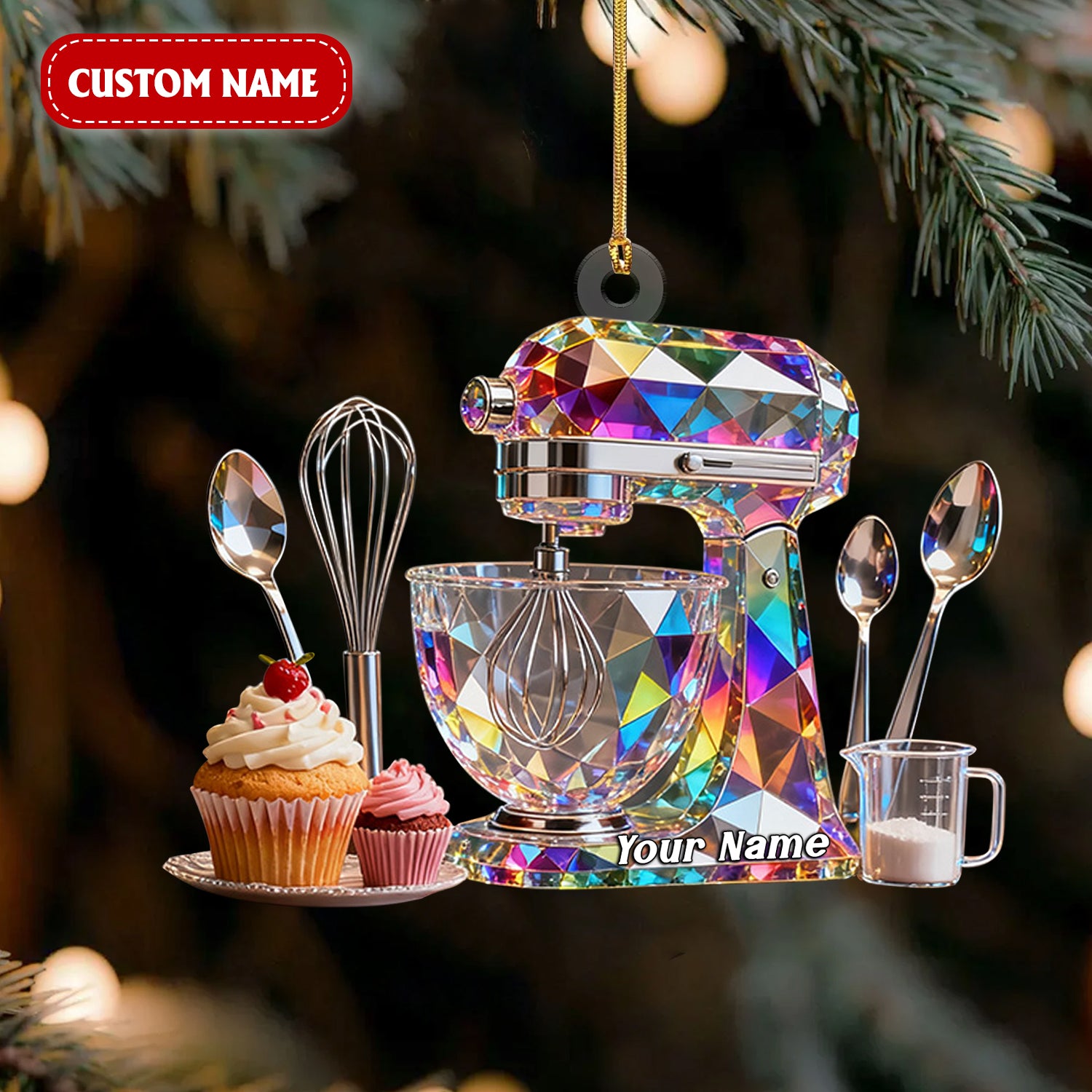Blender Baking Custom Name Stained Glass Effect Acrylic Christmas Ornament, Xmas Tree Decor, Baker Gift
