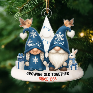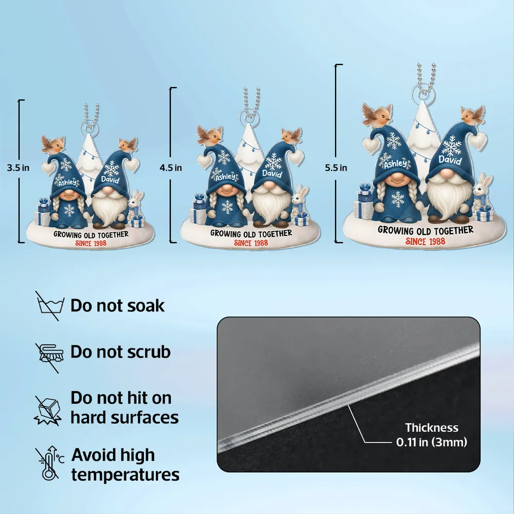Blue Gnome Christmas Couple Growing Old Together Personalized Acrylic Ornament