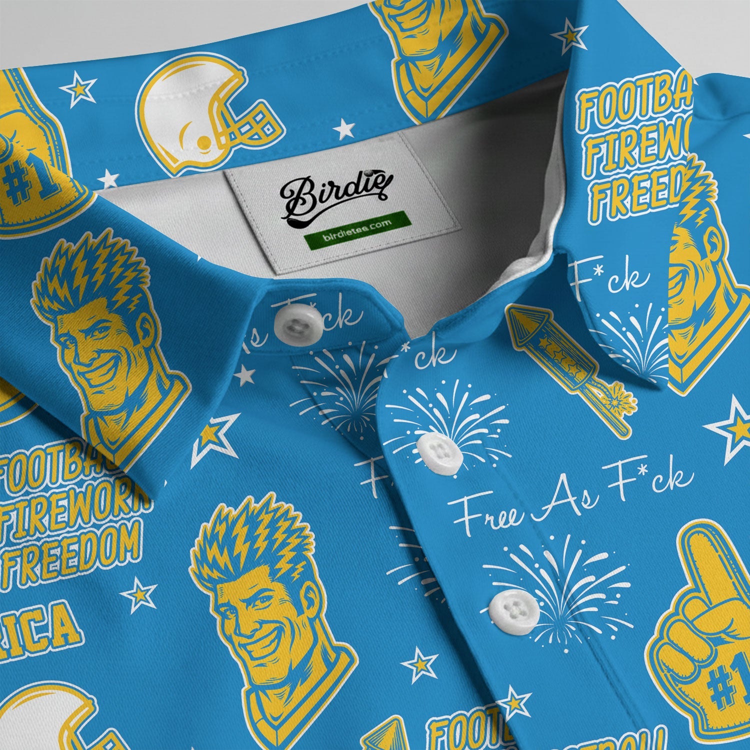 Bolt Man Powder Blue Sunshine Gold Sport Polo, American Football League Gift Ideas For Football Fans