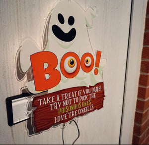 Boo! Take A Treat If You Dare! Ghost Halloween Welcome Door Sign, Halloween Decor