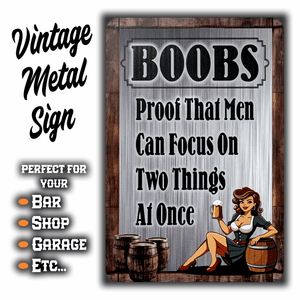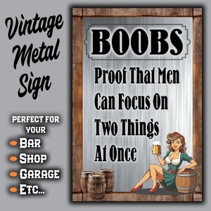 Boobs Proof That Men Can Focus on Two Things at Once Metal Sign, Metal Wall Decor