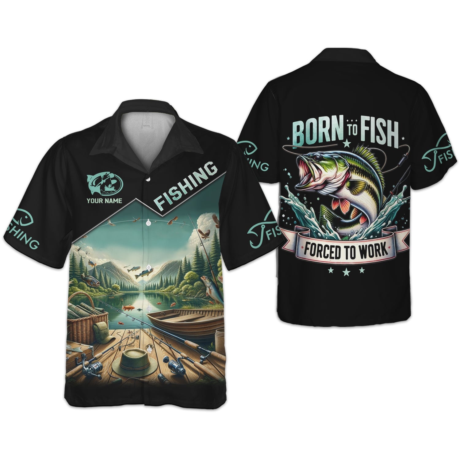 Born To Fish Forced To Work Funny Fishing Shirts, UV Protection Shirt, Long Sleeve Fishing Shirts, Mens Casual Shirts
