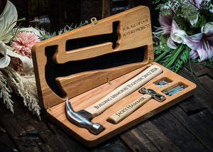 - Purposeful presentation in elegance: The set is elegantly presented in a oak wood gift box lined with velvet, complete with nails and customizable engraving options to make your gift truly unique. Engrave your special messages on each hammer to reflect the essence of your unique relationship.