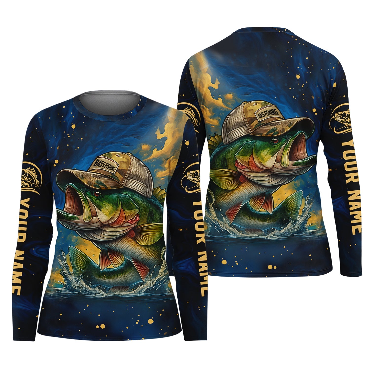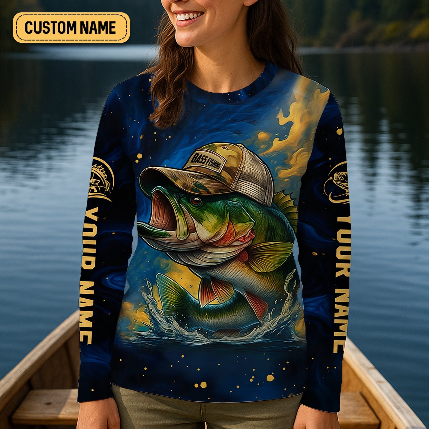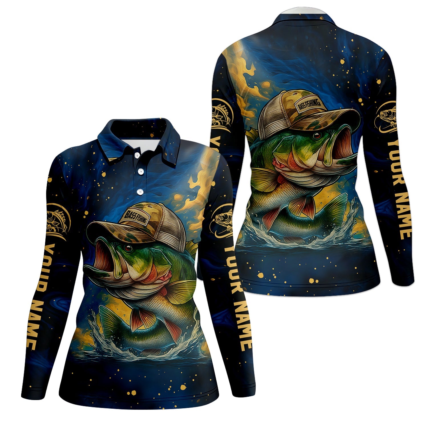 Camouflage Fishing Shirts, Largemouth Bass Fishing, Women's Fishing Shirt, SPF Long Sleeve Shirts Womens