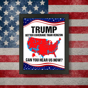 Show off your love for America and support for our President with this Trump Picture Frame. Featuring a map of the US and the iconic phrase "Can You Hear Us Now", this makes the perfect gift for any Trump supporter. Display your patriotism proudly with this unique and stylish frame.