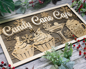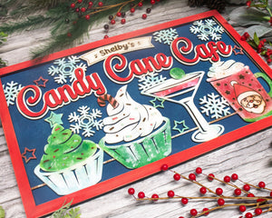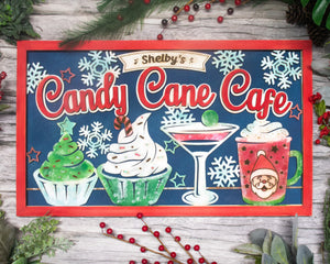 Candy Cane Cafe Personalized Christmas Wood Sign, Holiday Decor