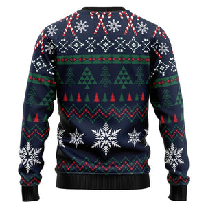 The design features playful graphics and holiday motifs, making it an eye-catching choice for any festive occasion. Imagine wearing it to holiday parties, family gatherings, or even while enjoying cozy nights at home. With its vibrant colors and fun theme, this sweater is sure to be a hit, sparking smiles and conversations wherever you go.