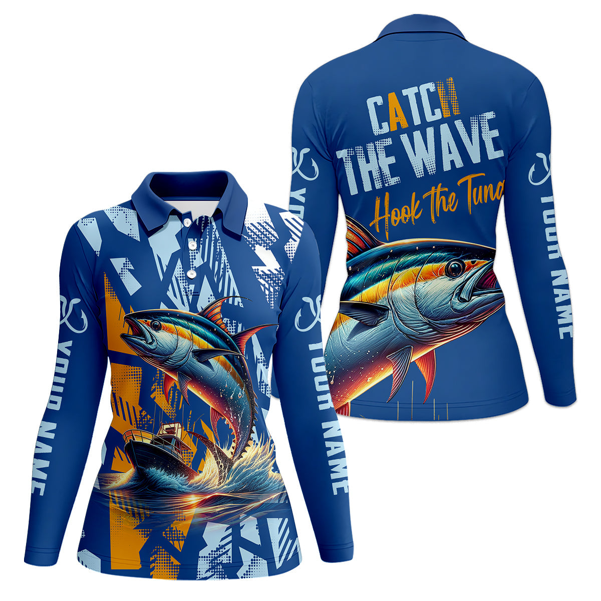 Catch The Wave Hook The Tuna Fishing Women SPF Shirt, Women Fishing Shirt, Funny Fishing Shirt