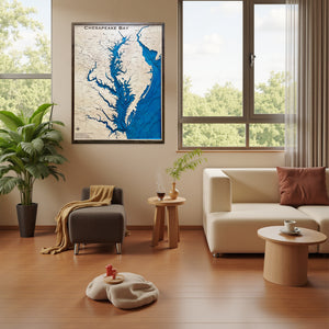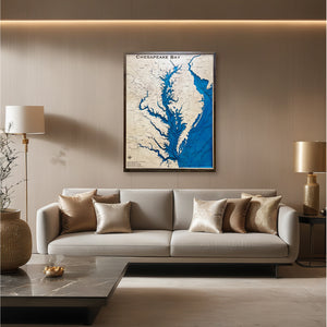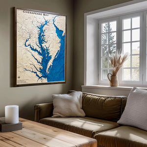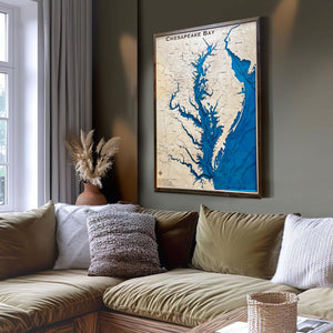 Chespeake Bay Customize Wood Art, Topographic Ocean Map, Ocean Art Work