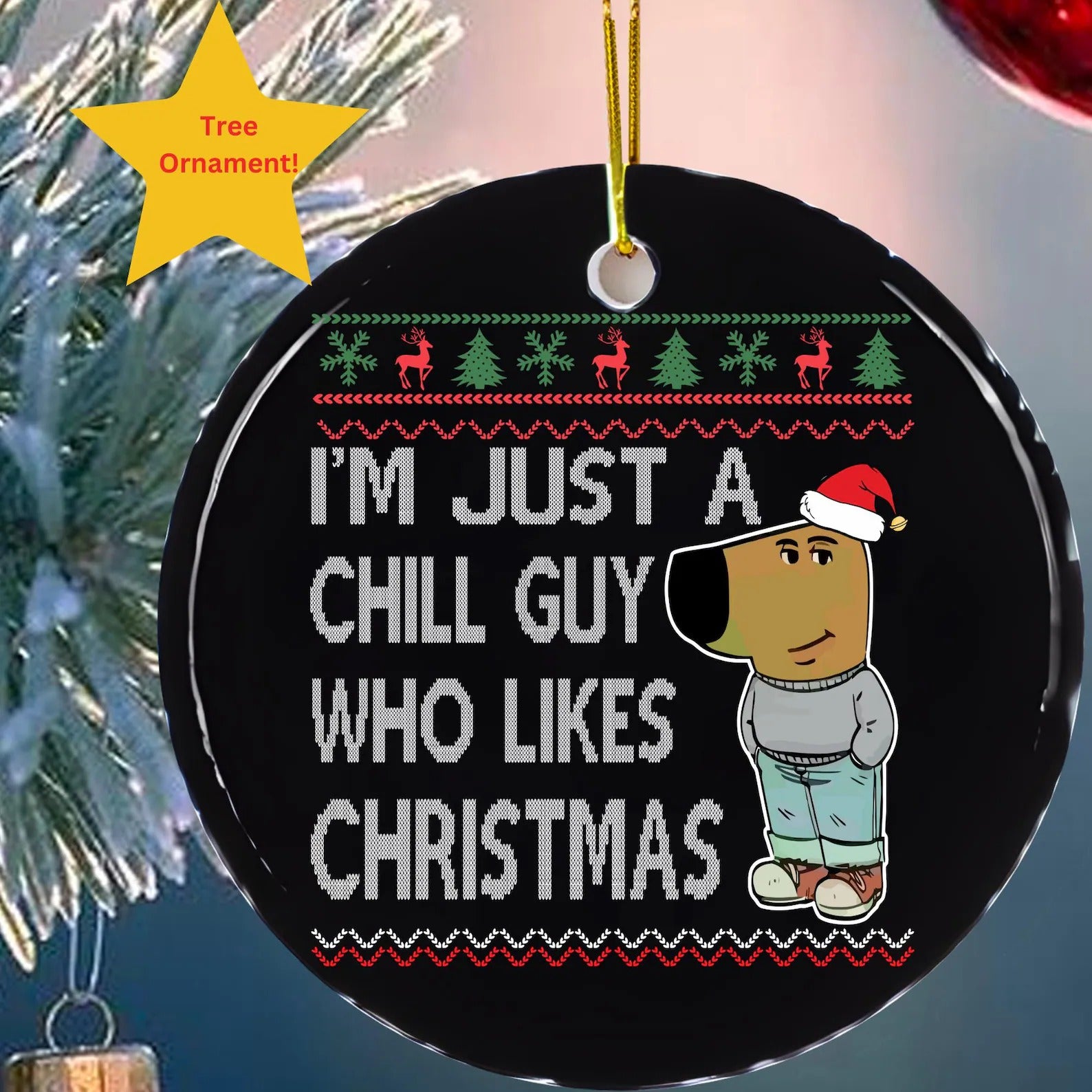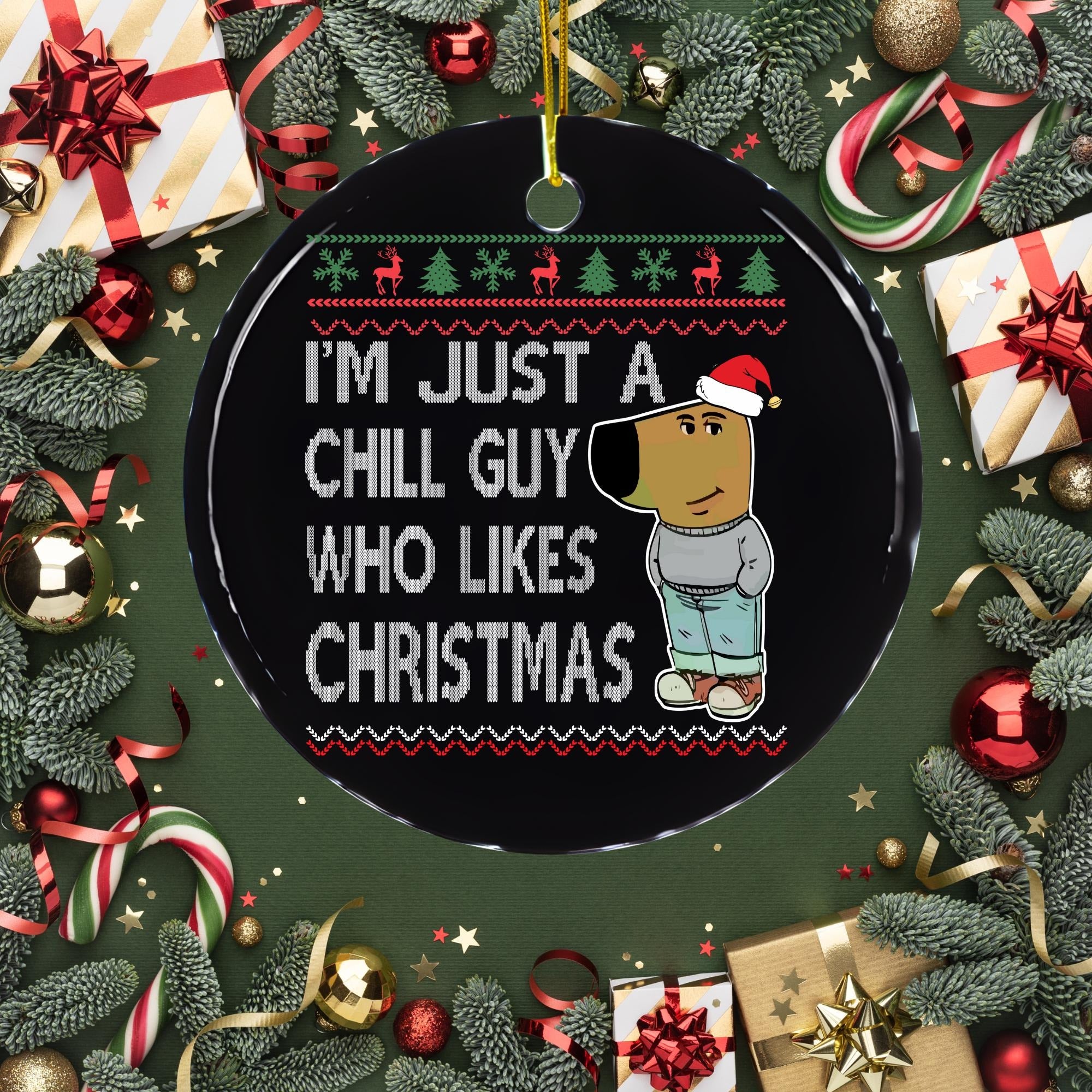Chill Guy Dog Acrylic Ornament, Christmas Tree Decoration, Ornament Gift Idea, Christmas Ornament