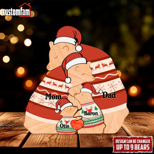 Christmas Custom Engraved Wooden Bears Family Puzzle, Christmas Family Gifts