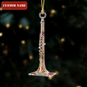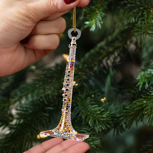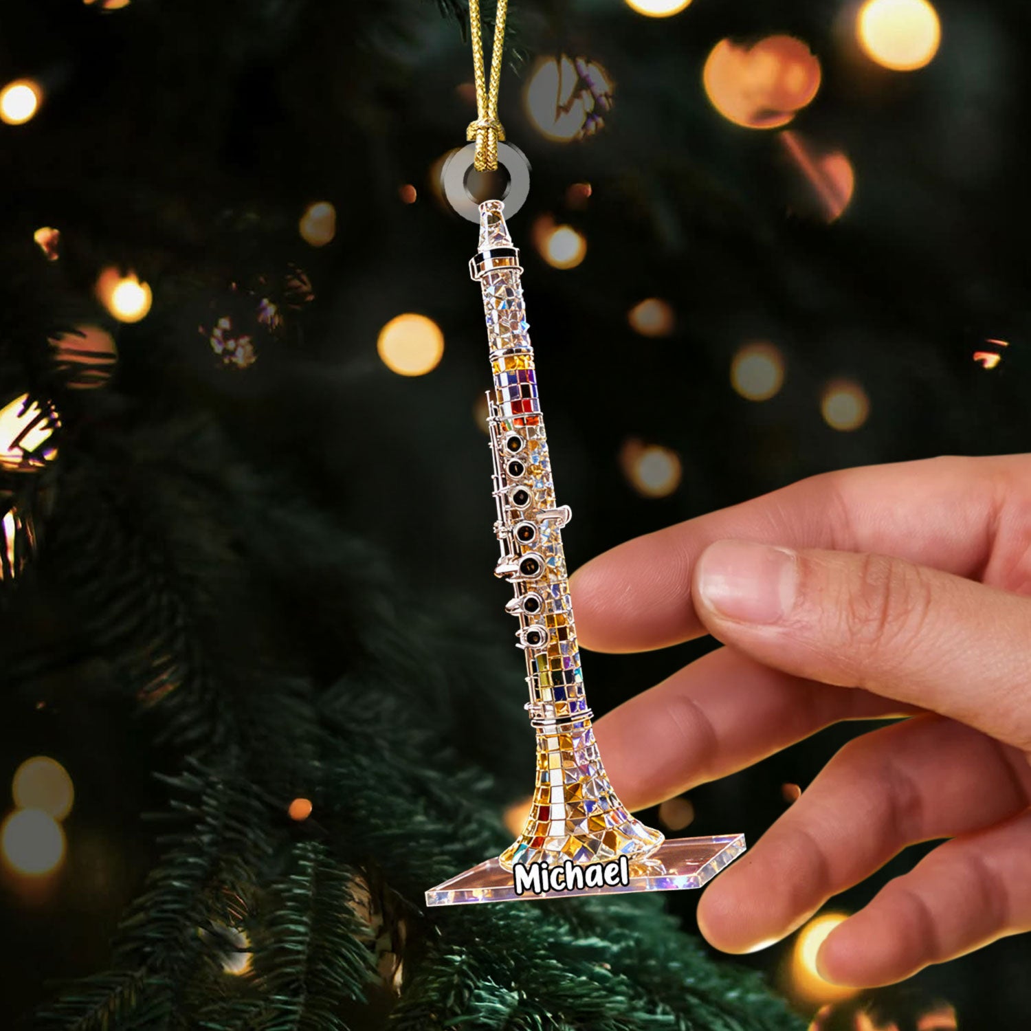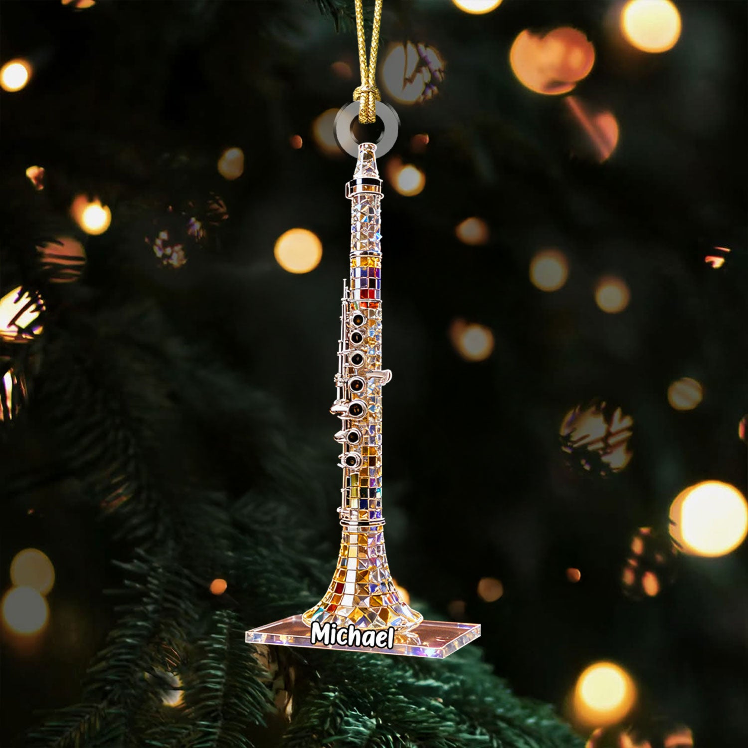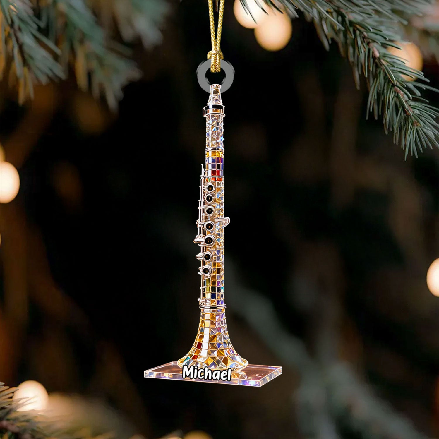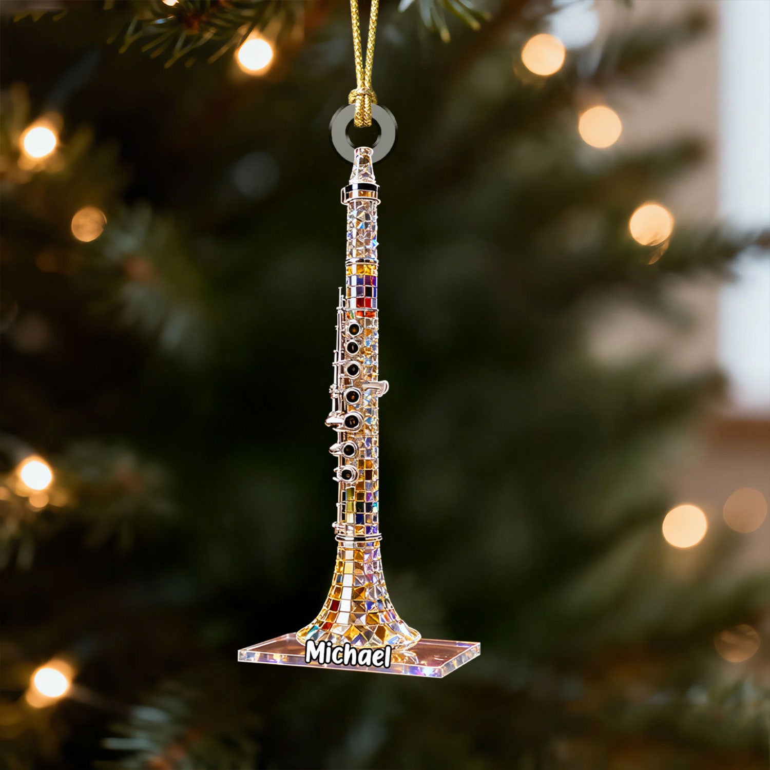 Clarinet Custom Name Stained Glass Effect Acrylic Christmas Ornament, Music Ornament, Musician Gift