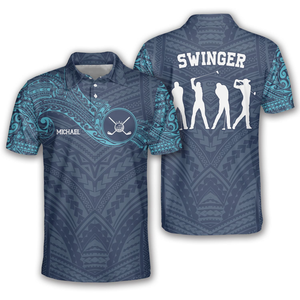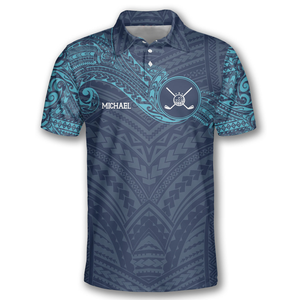 Classy Blue Tribal Custom Golf Polo Shirts For Men, Long Sleeve Golf Shirts, Golf Lovers Gift