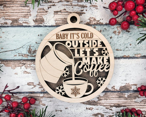 Coffee Christmas Ornament, Coffee And Tea Gifts, Coffee Lover Gift, 2-Layer Wooden Ornament