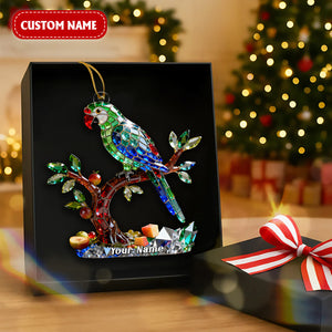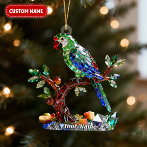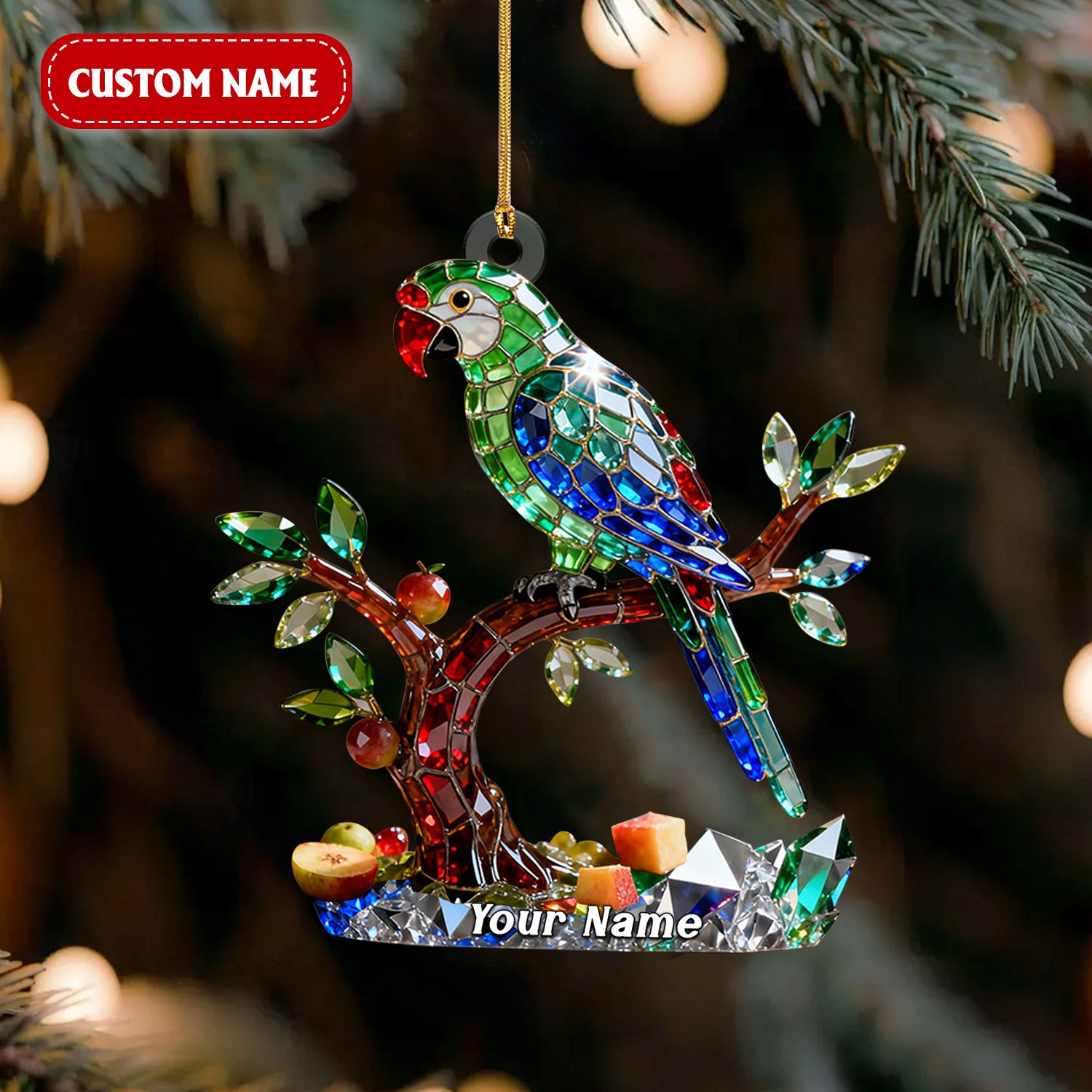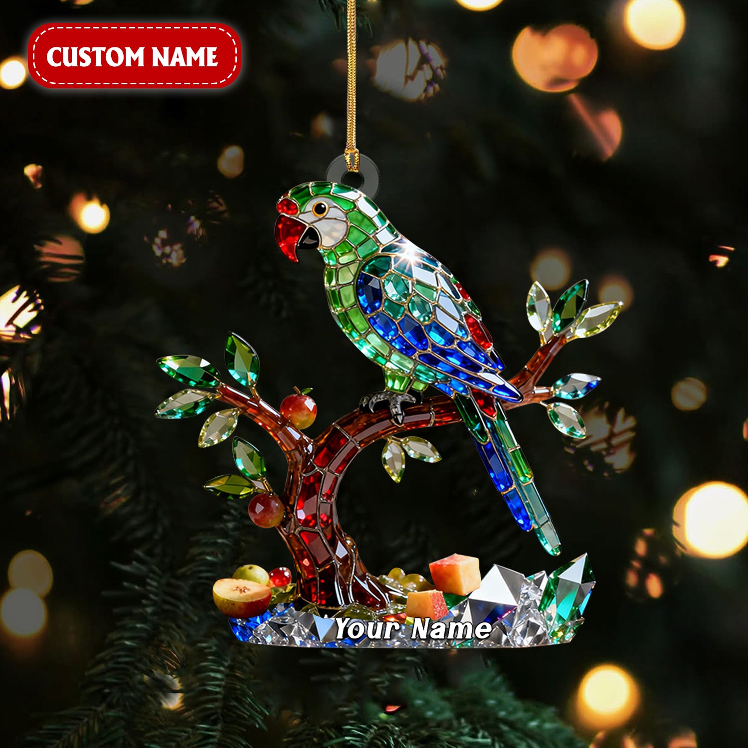 Colorful Parrot Custom Name Stained Glass Effect Acrylic Ornament, Parrot Christmas Ornaments