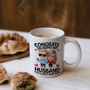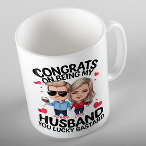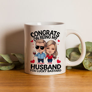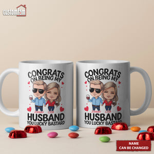 Congrats On Being My Husband You Lucky Bastard Personalized Accent Mug, Valentine Coffee Mug, Couple Mug, Valentine Gift