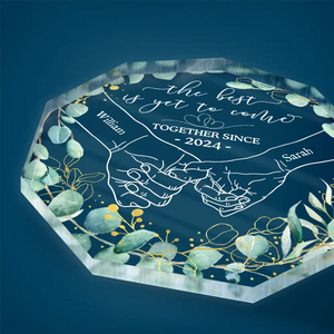 Celebrate the journey of love and commitment with this Couple Holding Hands "The Best Is Yet To Come" Acrylic Plaque. A perfect wedding gift for newlyweds or an anniversary keepsake for married couples, this elegant plaque beautifully captures the promise of a bright future together. With its heartfelt message and timeless design, it's a beautiful reminder that the best moments of love are still ahead.