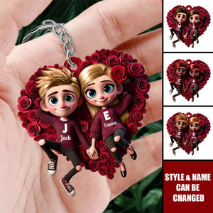 Couple Lying On Heat Roses Acrylic Ornament, Keychain For Couple, Cute Couple Keychain, Couple Valentine Gift