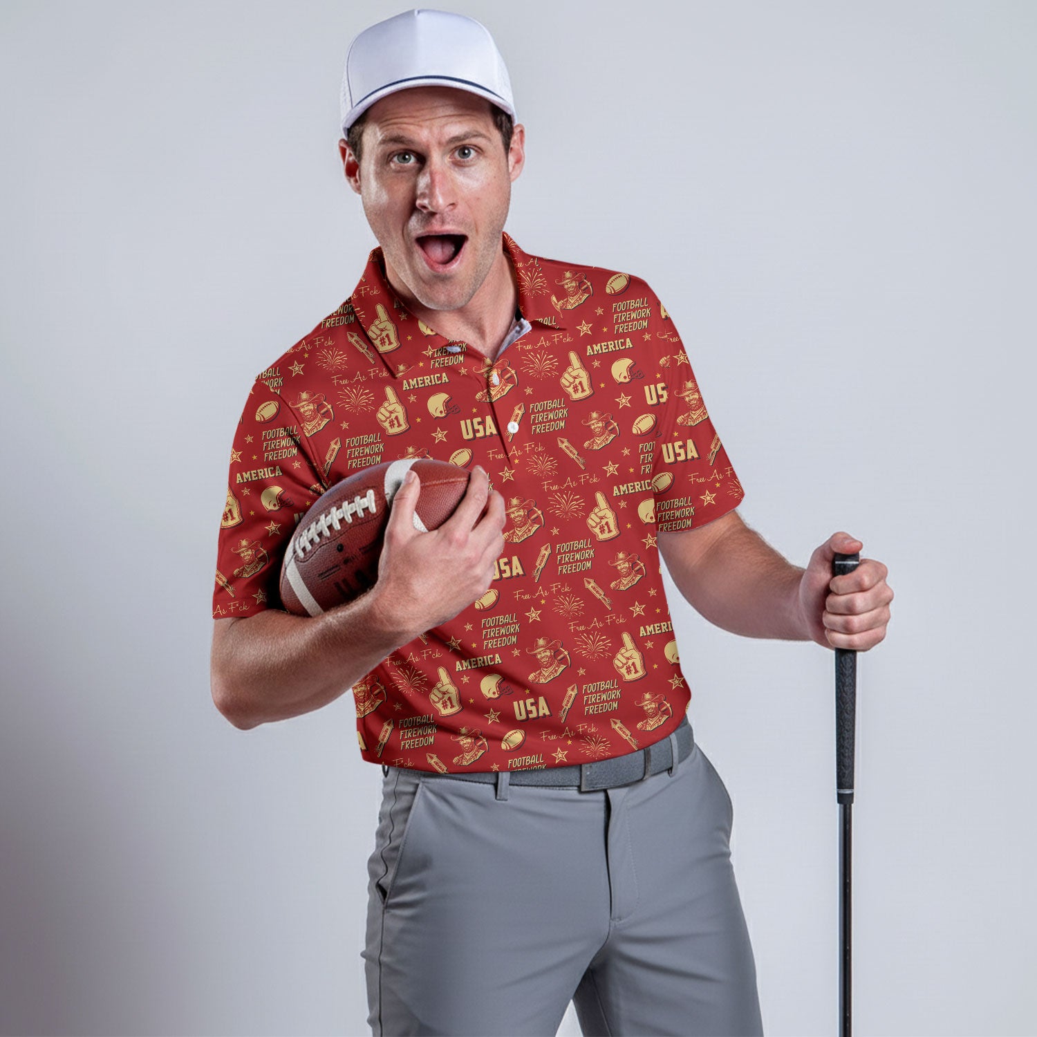 Cowboy Football American Patriotism Red And Gold Sport Polo, American Football League Gift Ideas For Football Fans