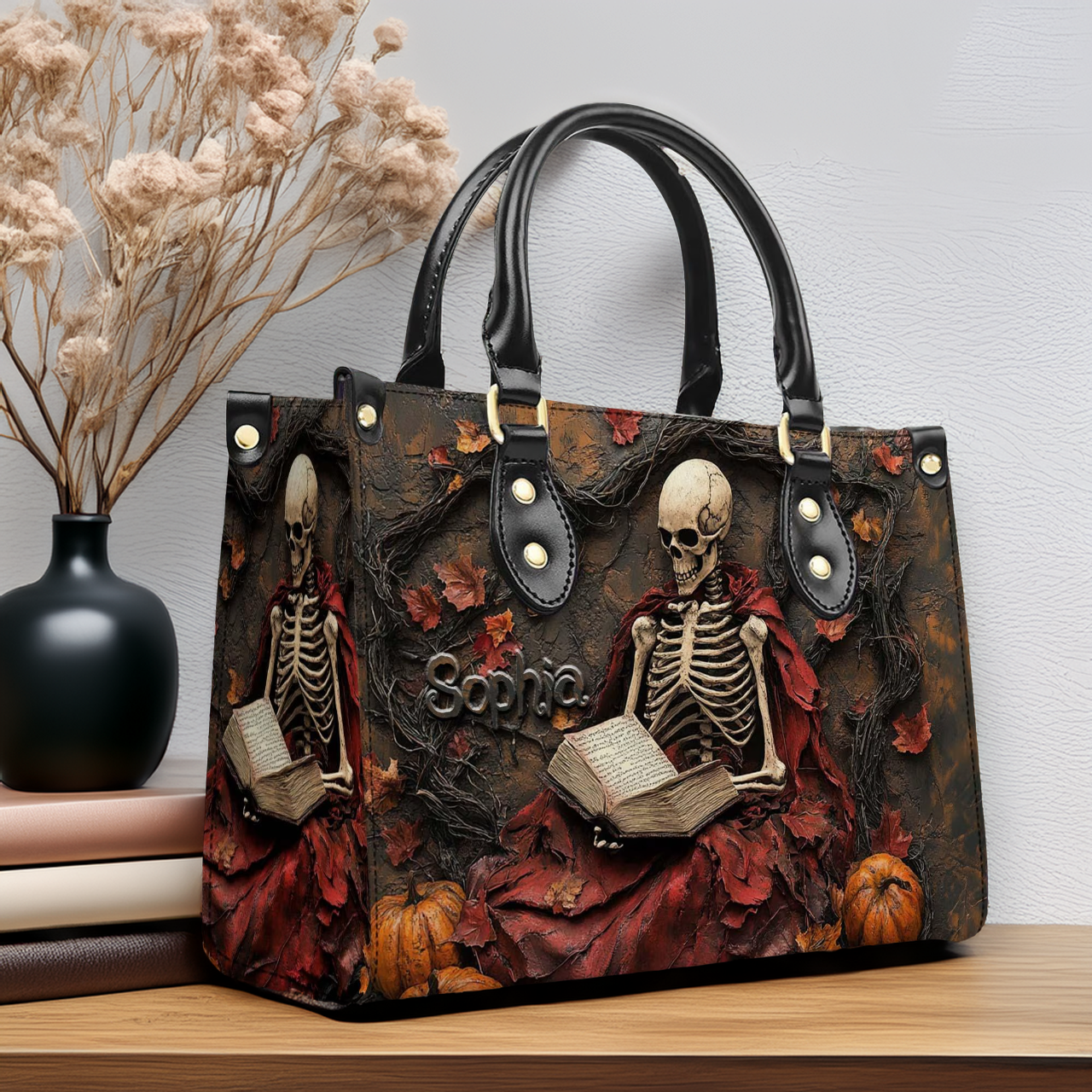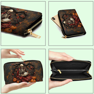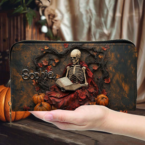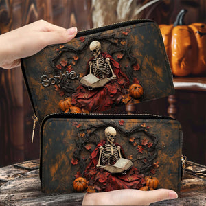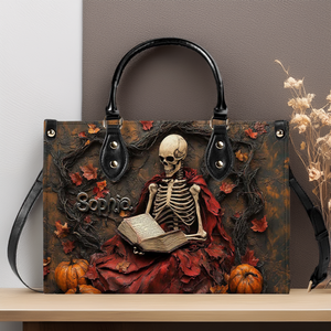 Creepy Scary Skeleton Leather Handbag With Wallet - Book Skeleton Crew Bags For Women - Leather Shoulder Bag