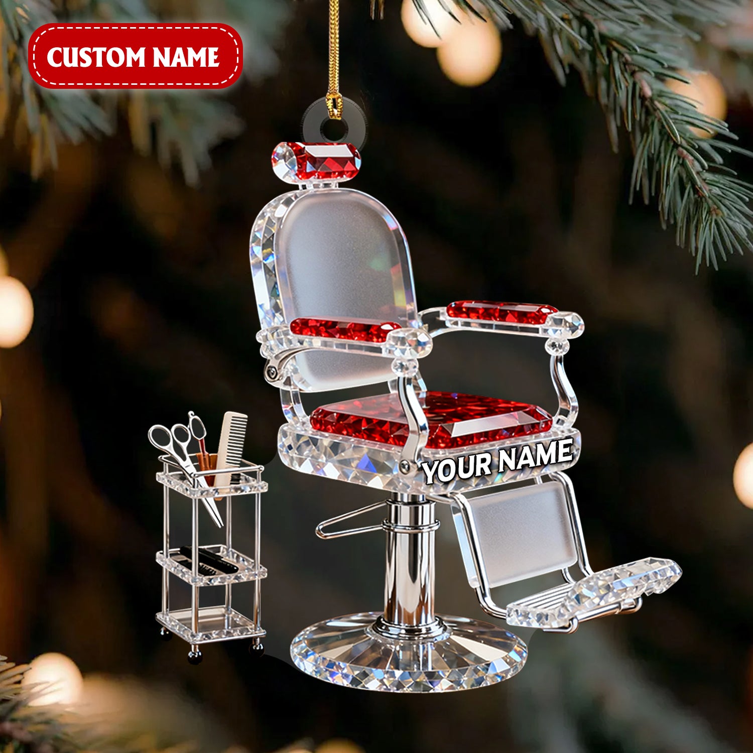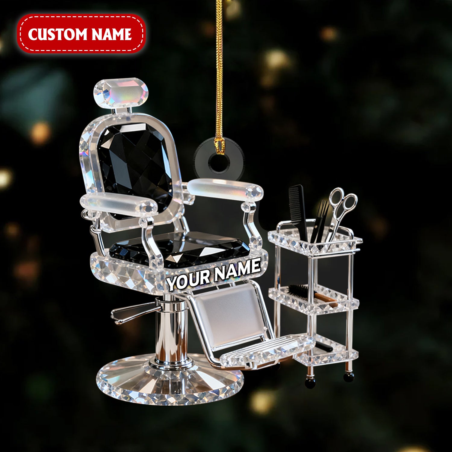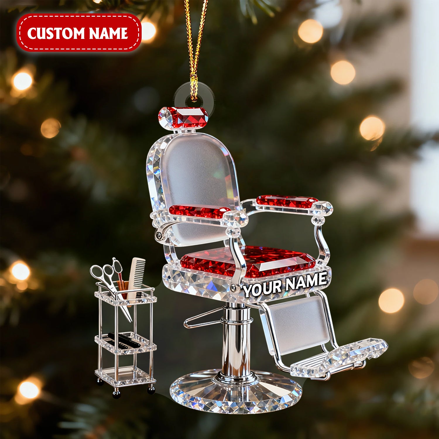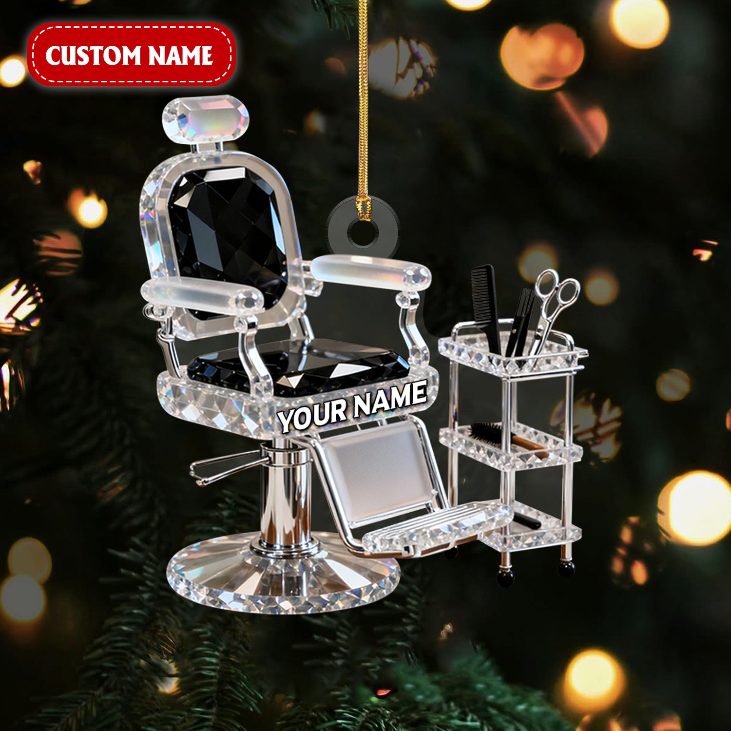 Custom Barber Chair Acrylic Ornament, Barber Ornament, Christmas Acrylic Ornament