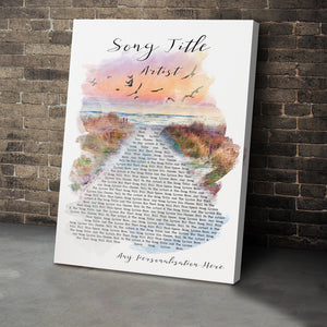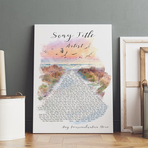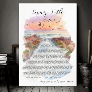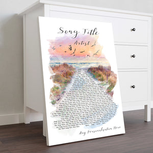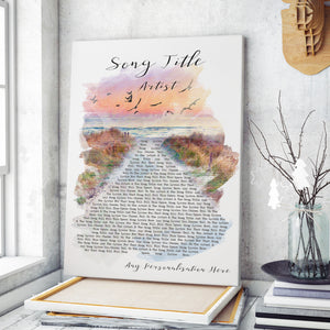 Custom Beach Sunset Birds Memorial Music Wall Art With Song Lyrics, Music Wall Decor