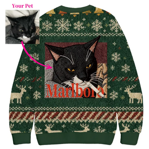Custom Cat Portraits Smoking Vintage Christmas Sweater, Ugly Xmas Sweater, Christmas Ugly Sweatshirt