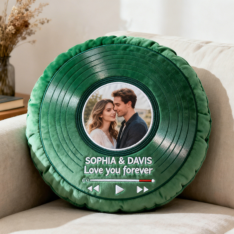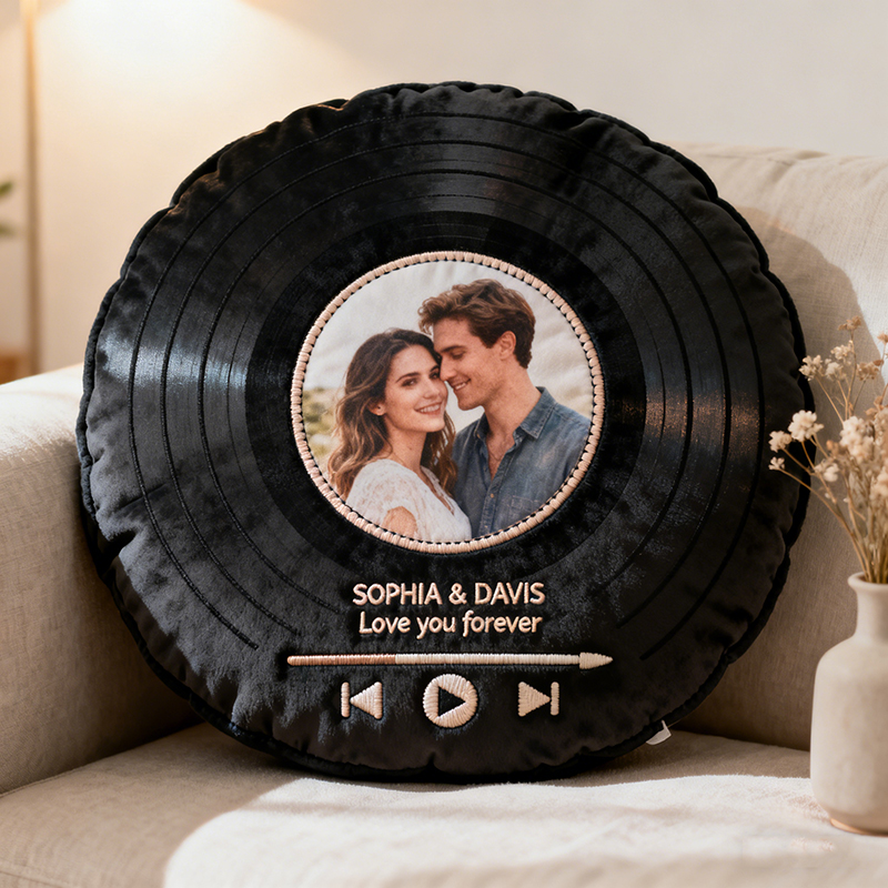 Custom Couple Portrait Print Vinyl Record Custom Shape Pillow, Personalized Gifts For Couple, Funny Valentines Gift