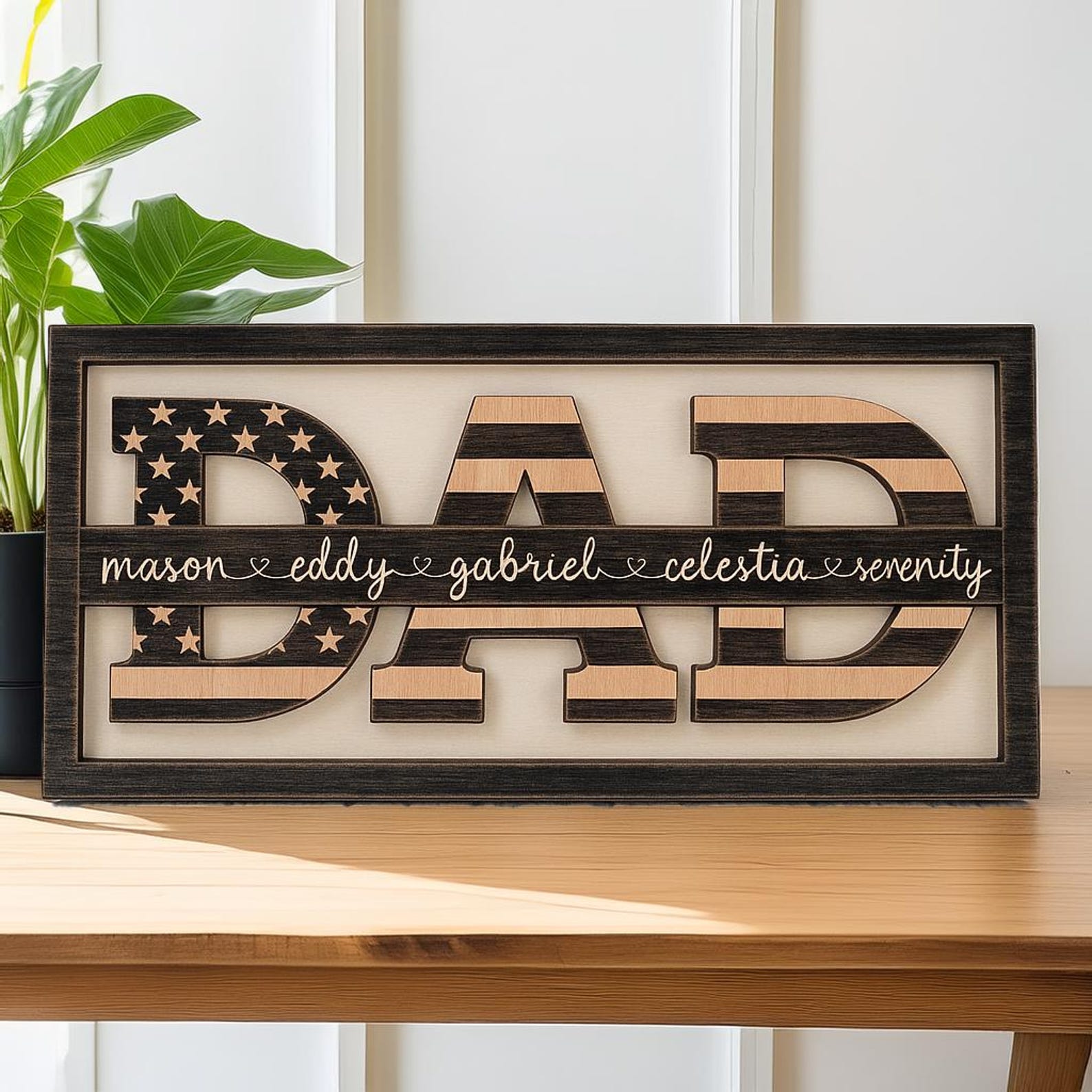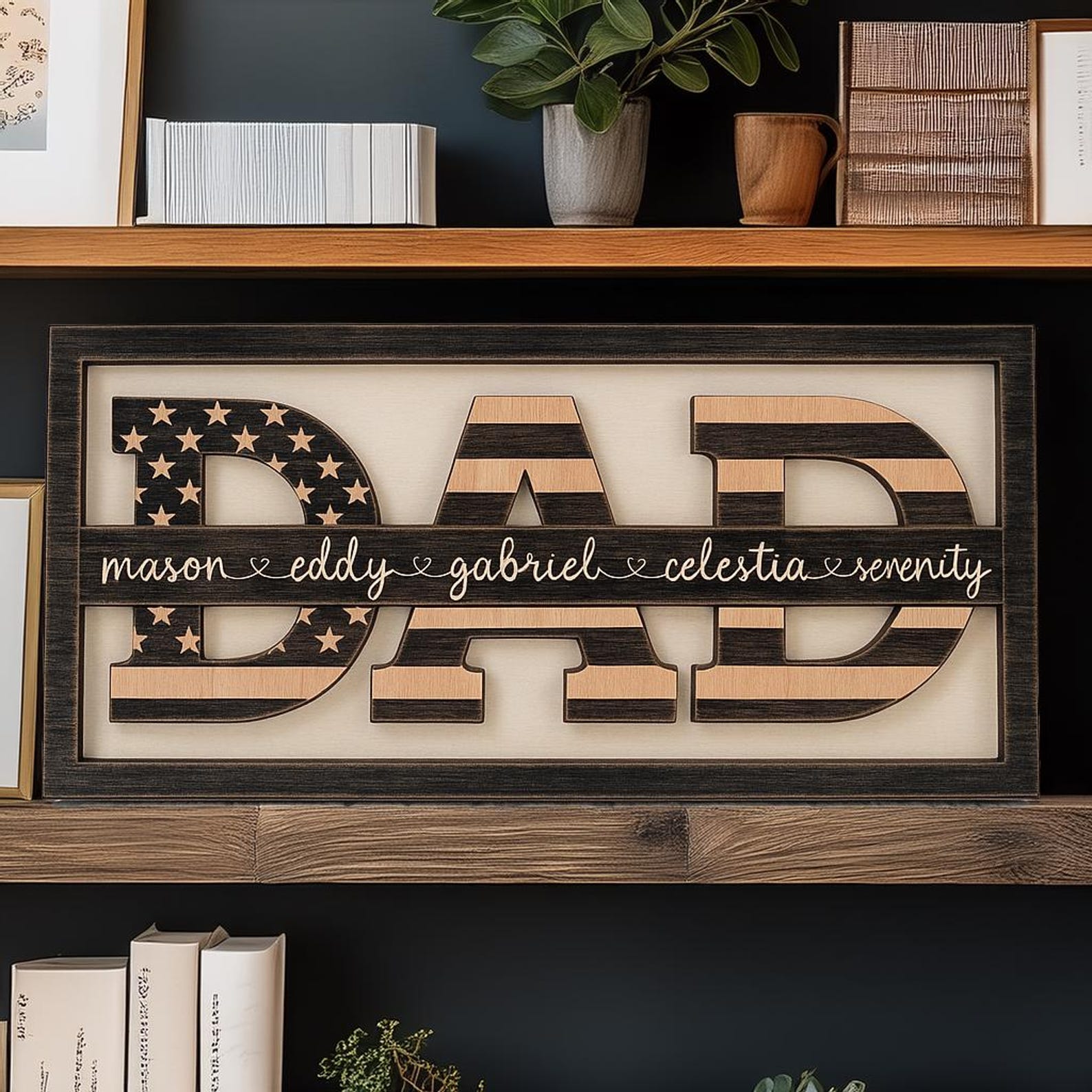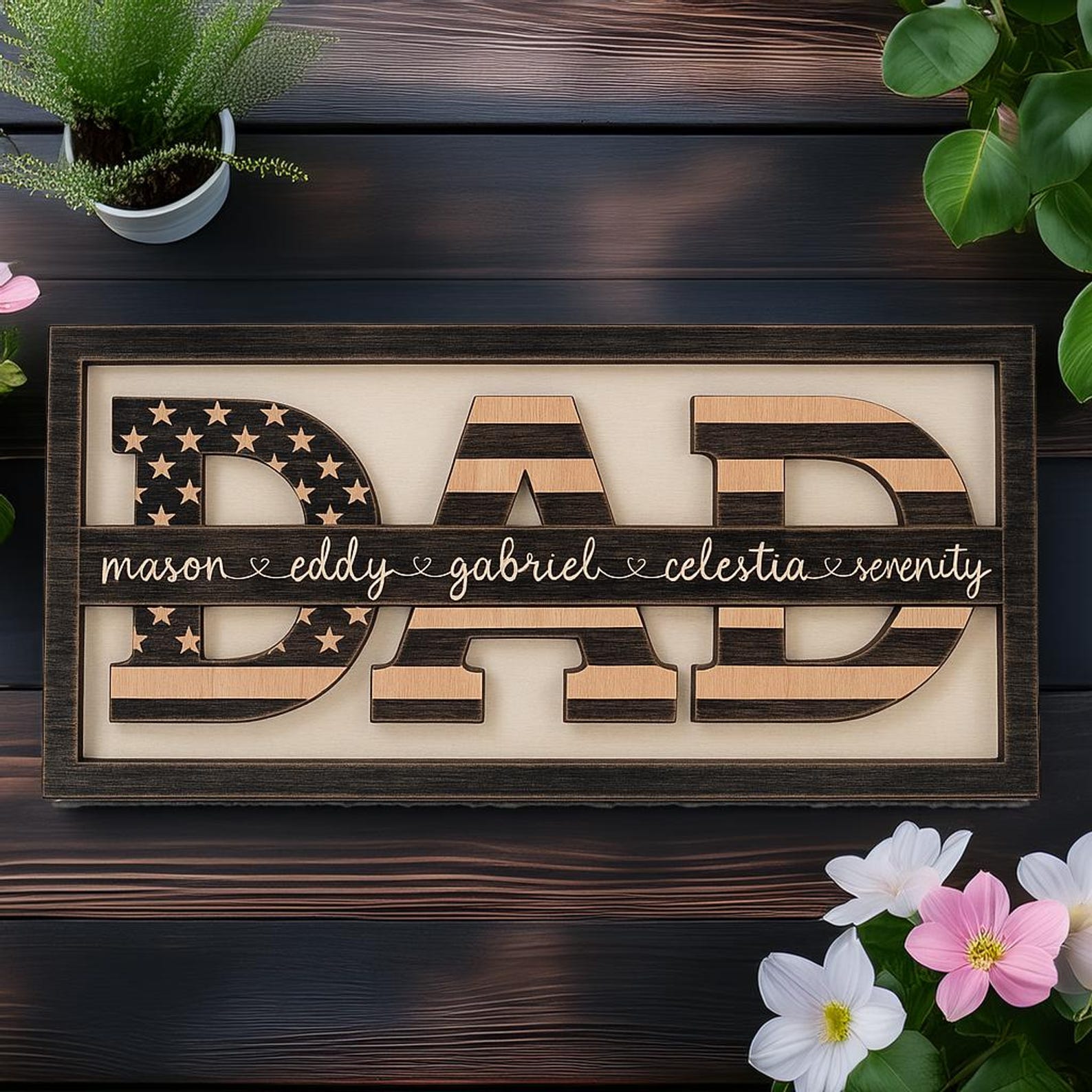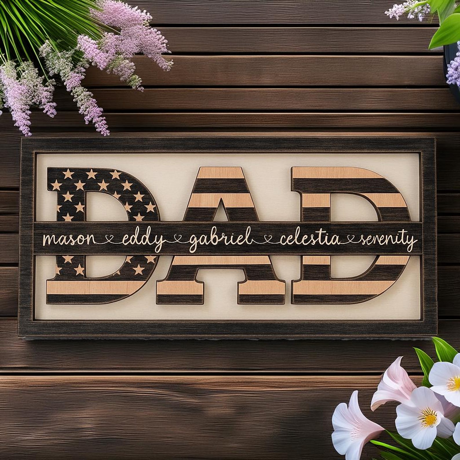 Custom Dad Wood Sign with Kid Names, Father's Day Gifts