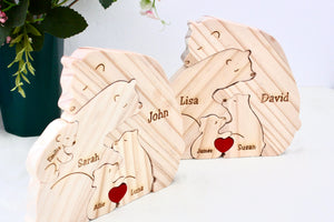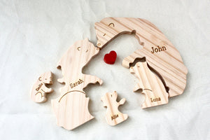 Custom Engraved Wooden Bear Family, Christmas Puzzle, Family Puzzle, Family Gift Idea
