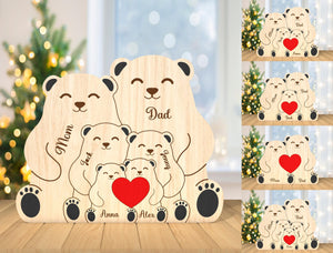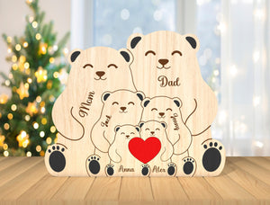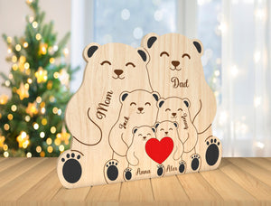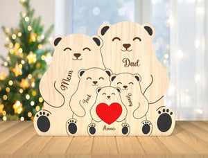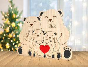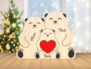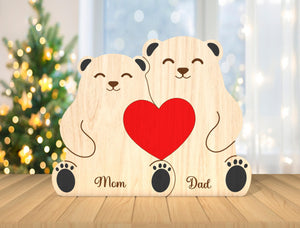 Custom Engraved Wooden Bear Family Holding Heart, Mother's Day Gift, Father's Day Gift, Home Decor