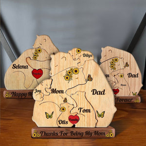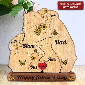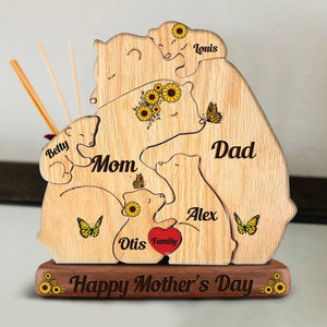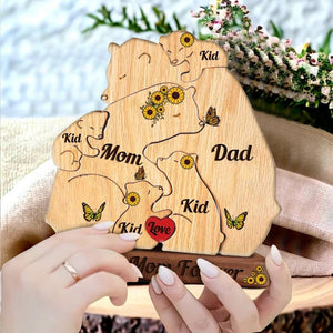 Custom Engraved Wooden Bears Family Sunflower Puzzle, Family Puzzle with Engraved Stand Keepsake Home Decor for Father/Mother's Day Gift