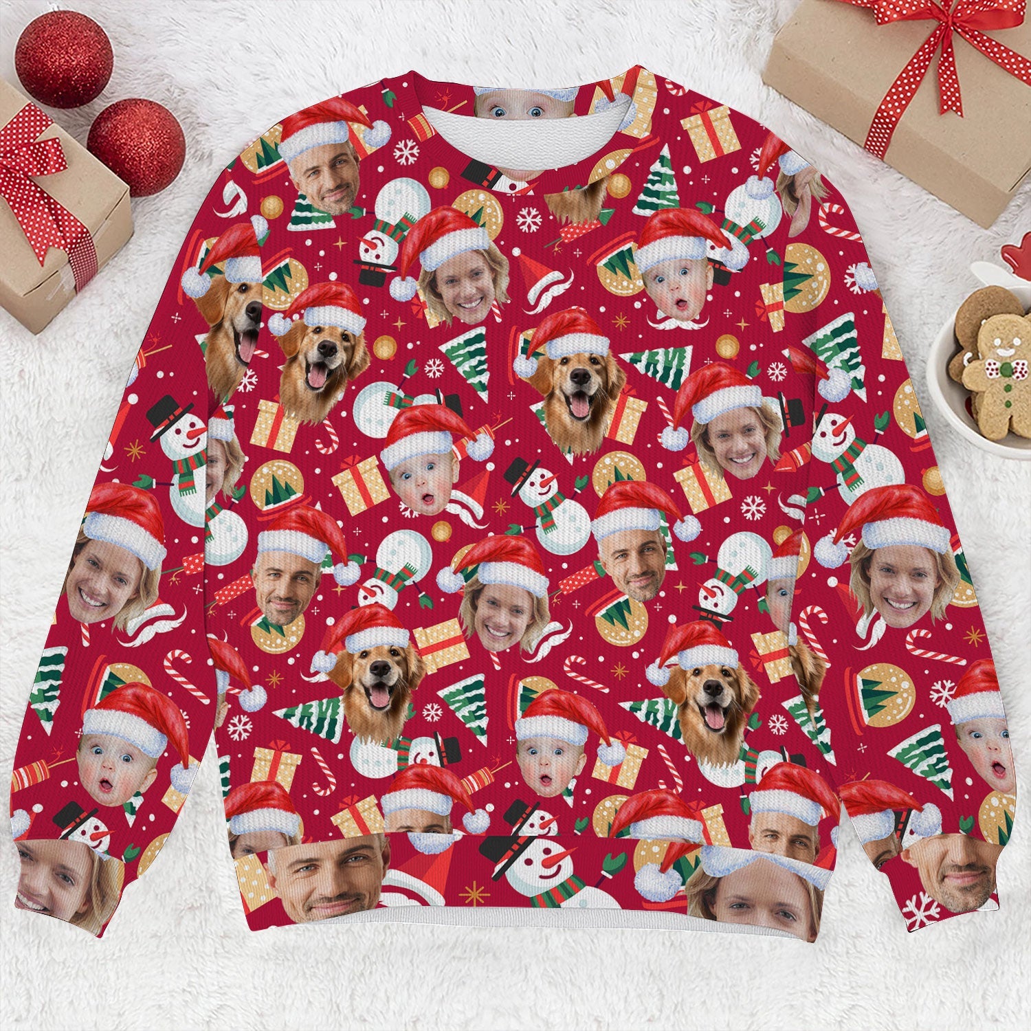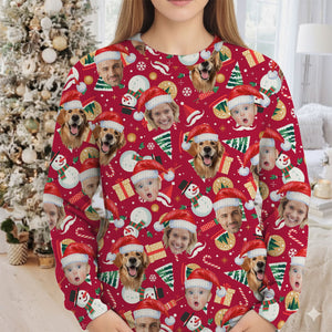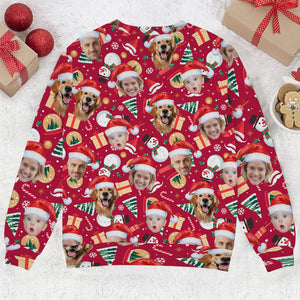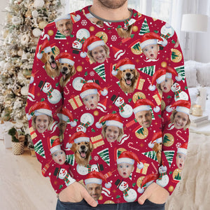 Custom Face Christmas Icons Red Golf Ugly Sweater, Christmas Golf Shirt, Golf Sweater, Christmas Golf Gift