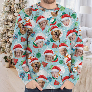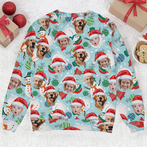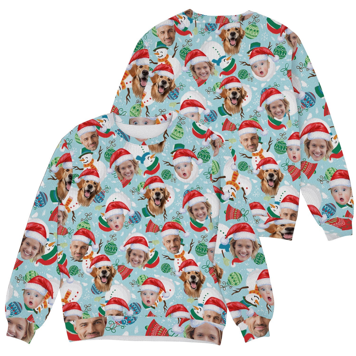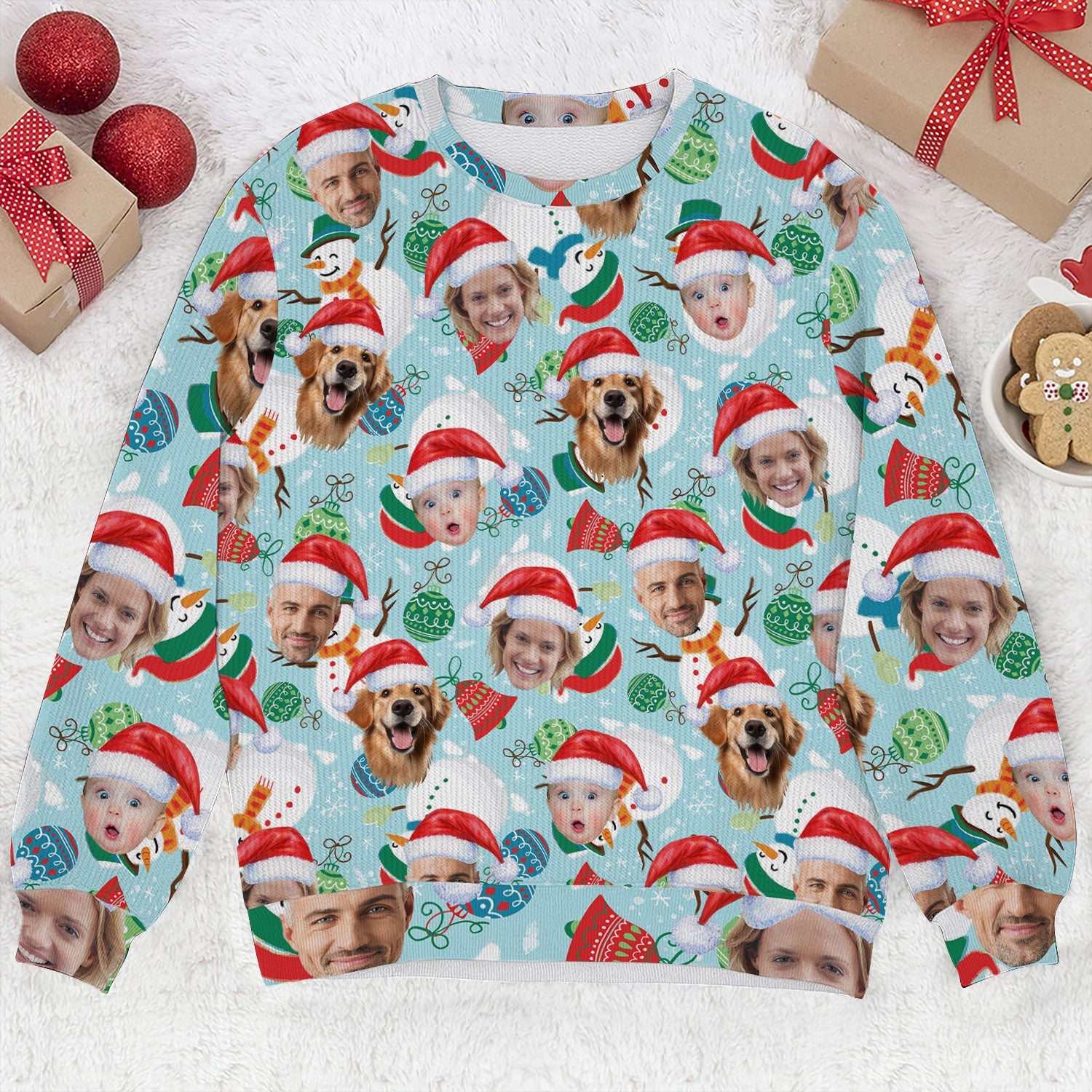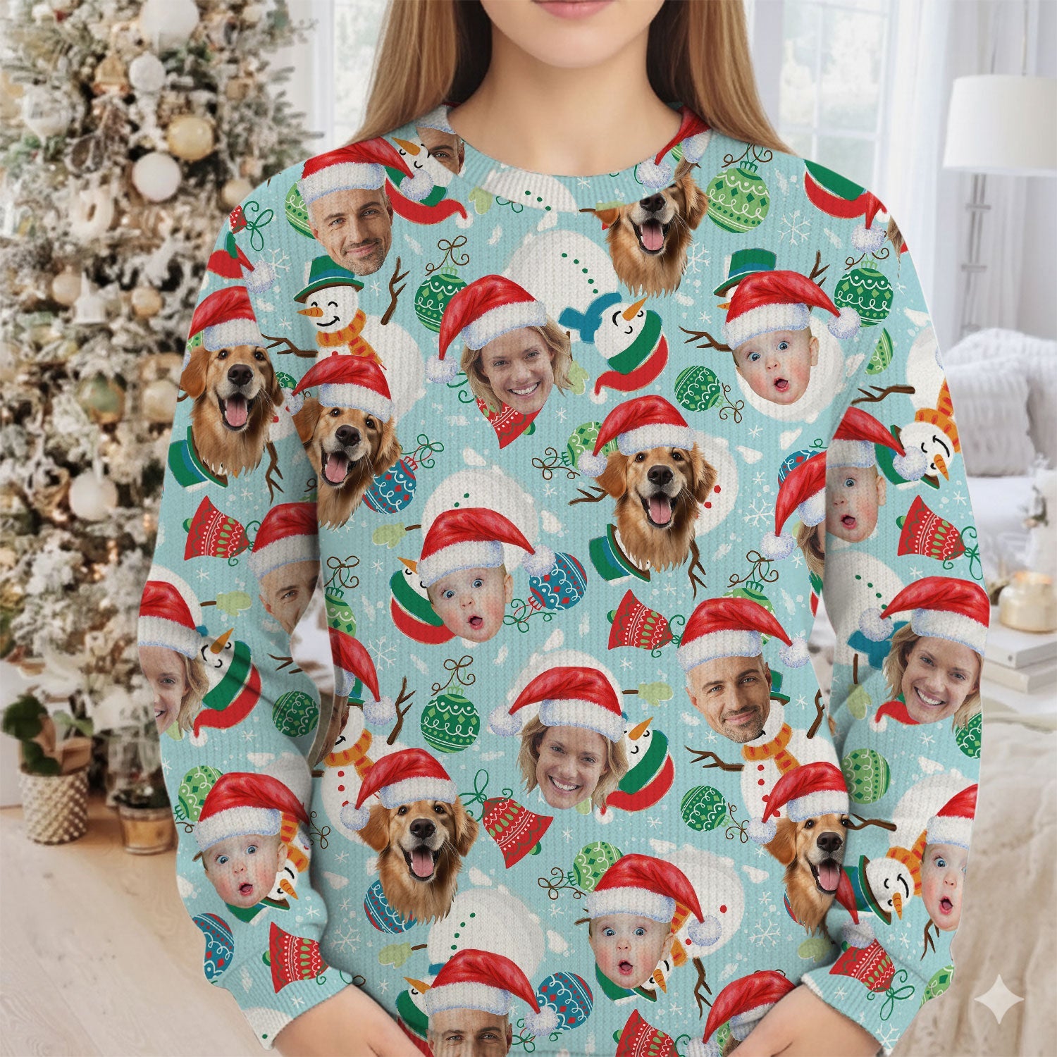 Custom Face Joyful Christmas Icy Blue Golf Ugly Sweater, Christmas Golf Shirt, Golf Sweater, Christmas Golf Gift