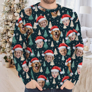 Custom Face Little Pine Tree Snowflake Pattern Golf Ugly Sweater, Golf Ugly Christmas Sweater, Christmas Golf Shirt