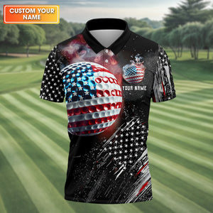 American Flag Ball Custom Golf Polo Shirt, Funny Golf Shirt, Dad Golf Gift