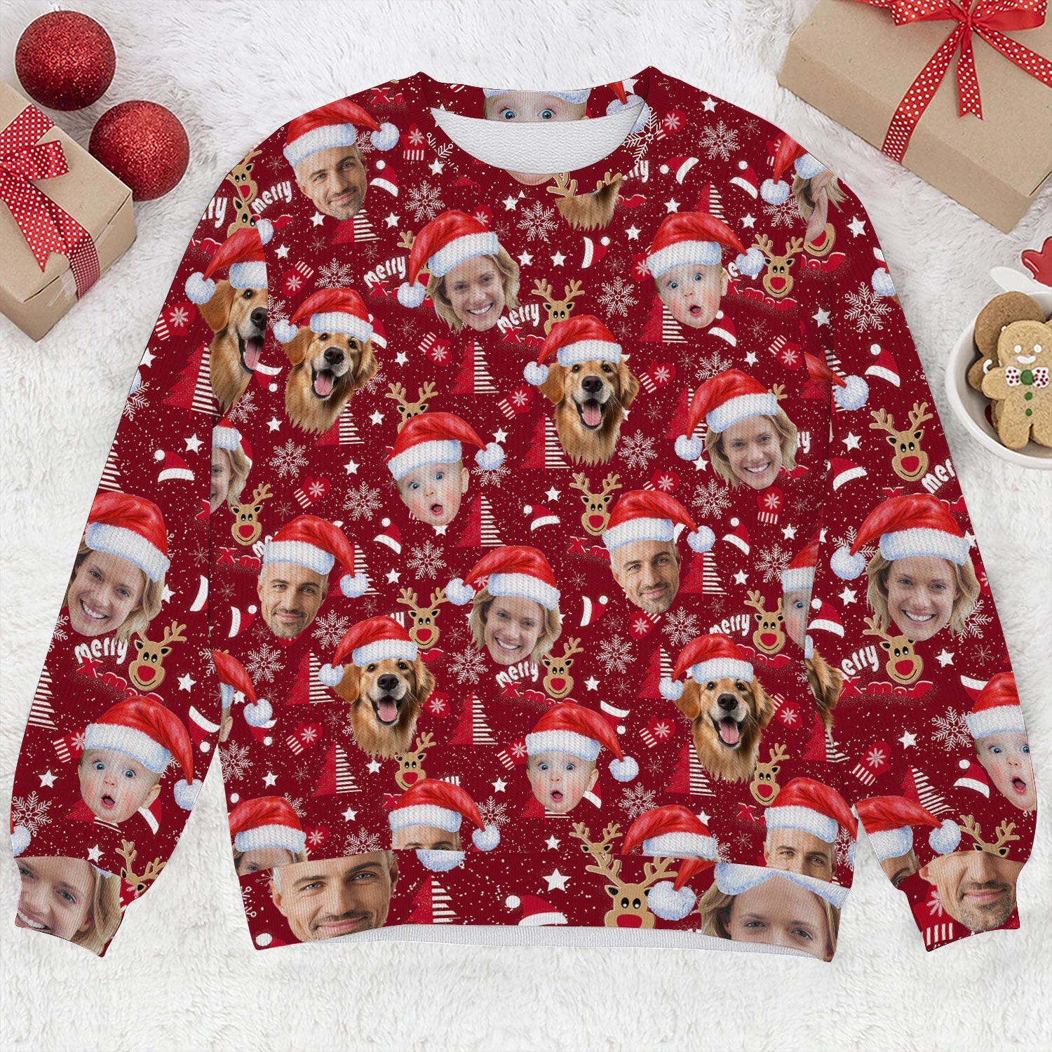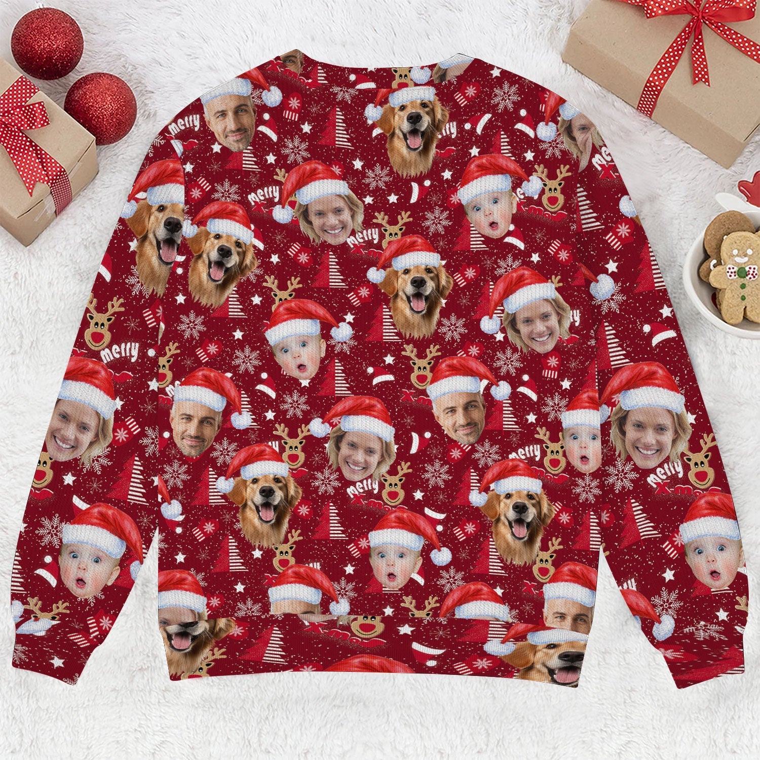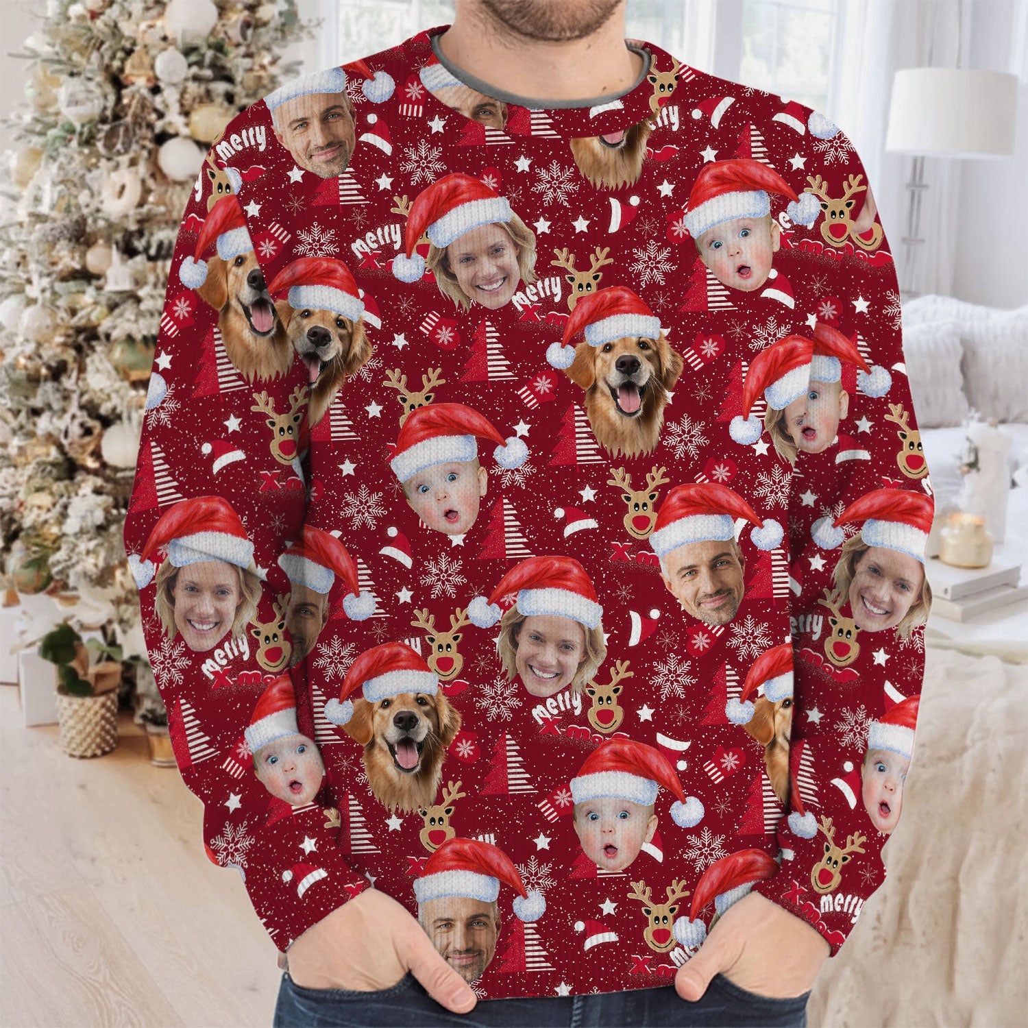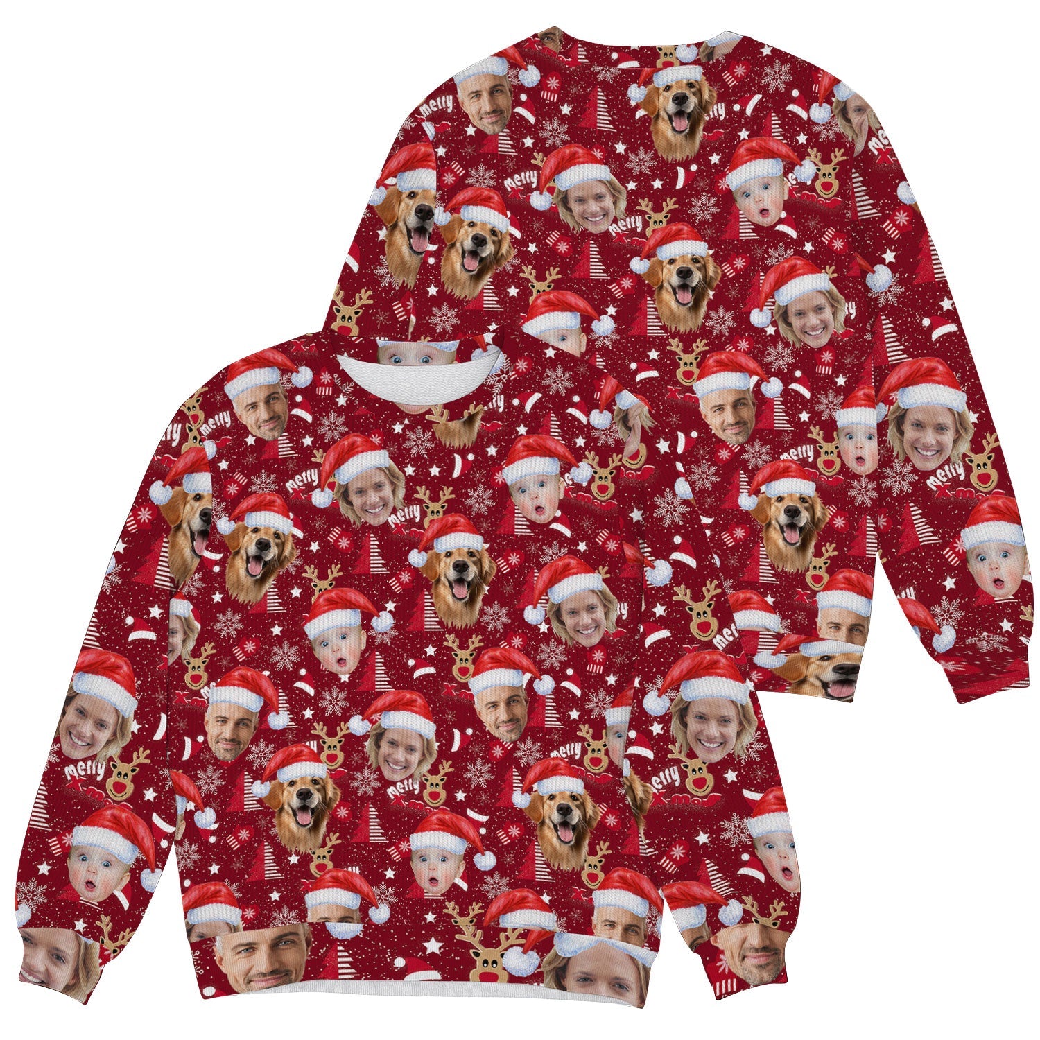 Custom Face Red Nose Reindeer Merry Xmas Red Golf Ugly Sweater, Golf Ugly Christmas Sweater, Christmas Golf Shirt