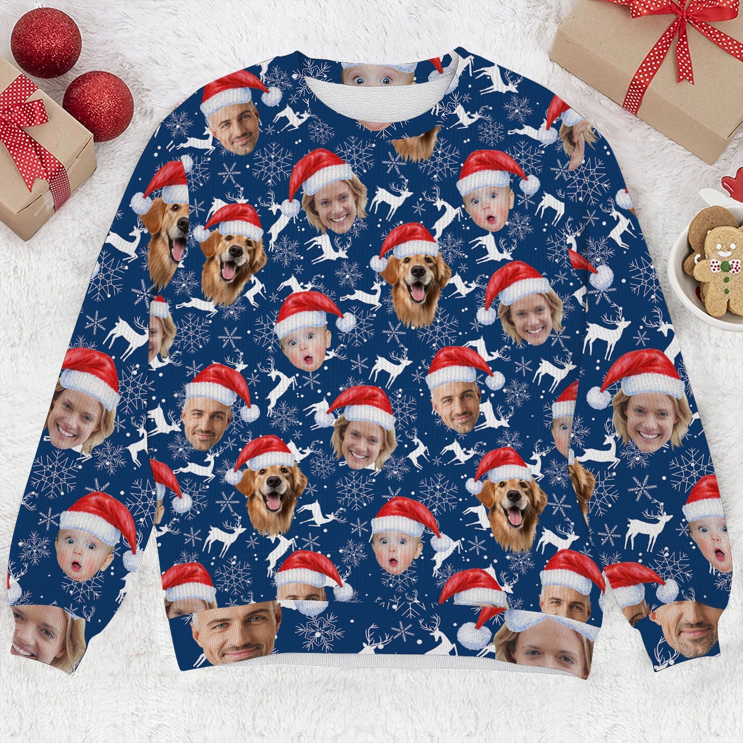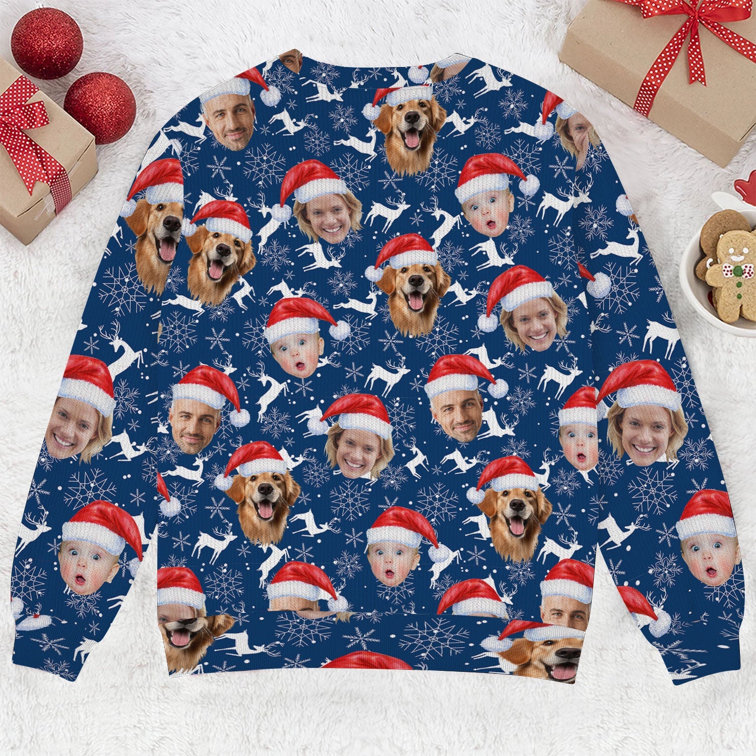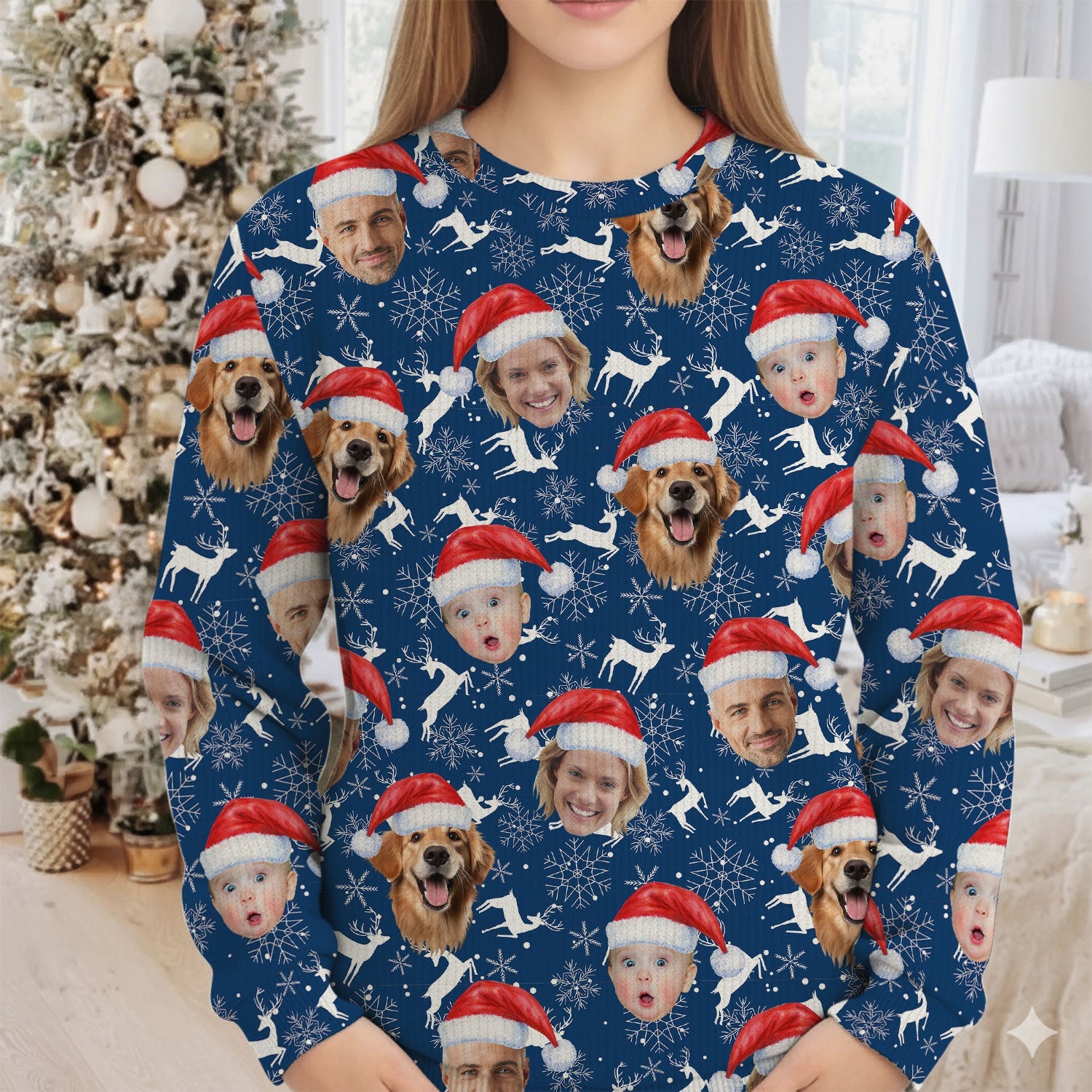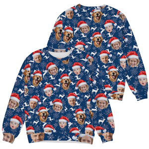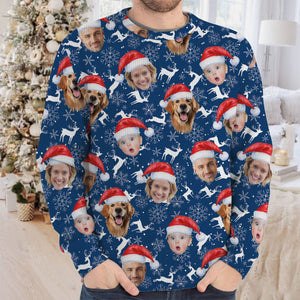 Custom Face Reindeer Pattern Navy Golf Ugly Sweater, Golf Ugly Christmas Sweater, Christmas Golf Shirt