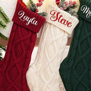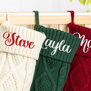 Personalized Cable Knit Christmas Stocking with Embroidered Name – Add a cozy, classic touch to your holiday decor with these beautifully knitted stockings, available in festive colors like red, green, and ivory. Each stocking is made from soft, durable material, featuring a traditional cable knit design and personalized with a name embroidered on the cuff. Perfect for family members of all ages, these stockings are spacious enough to be filled with treats, small gifts, and holiday surprises. Hang them by the fireplace to create a warm, inviting look that will make your Christmas extra memorable.