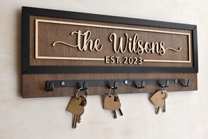 Perfect for gifting to new homeowners, newlyweds, couples embarking on a shared journey, or as a delightful indulgence for yourself, our bespoke wall-mounted key holder is a one-of-a-kind creation tailored to your preferences.